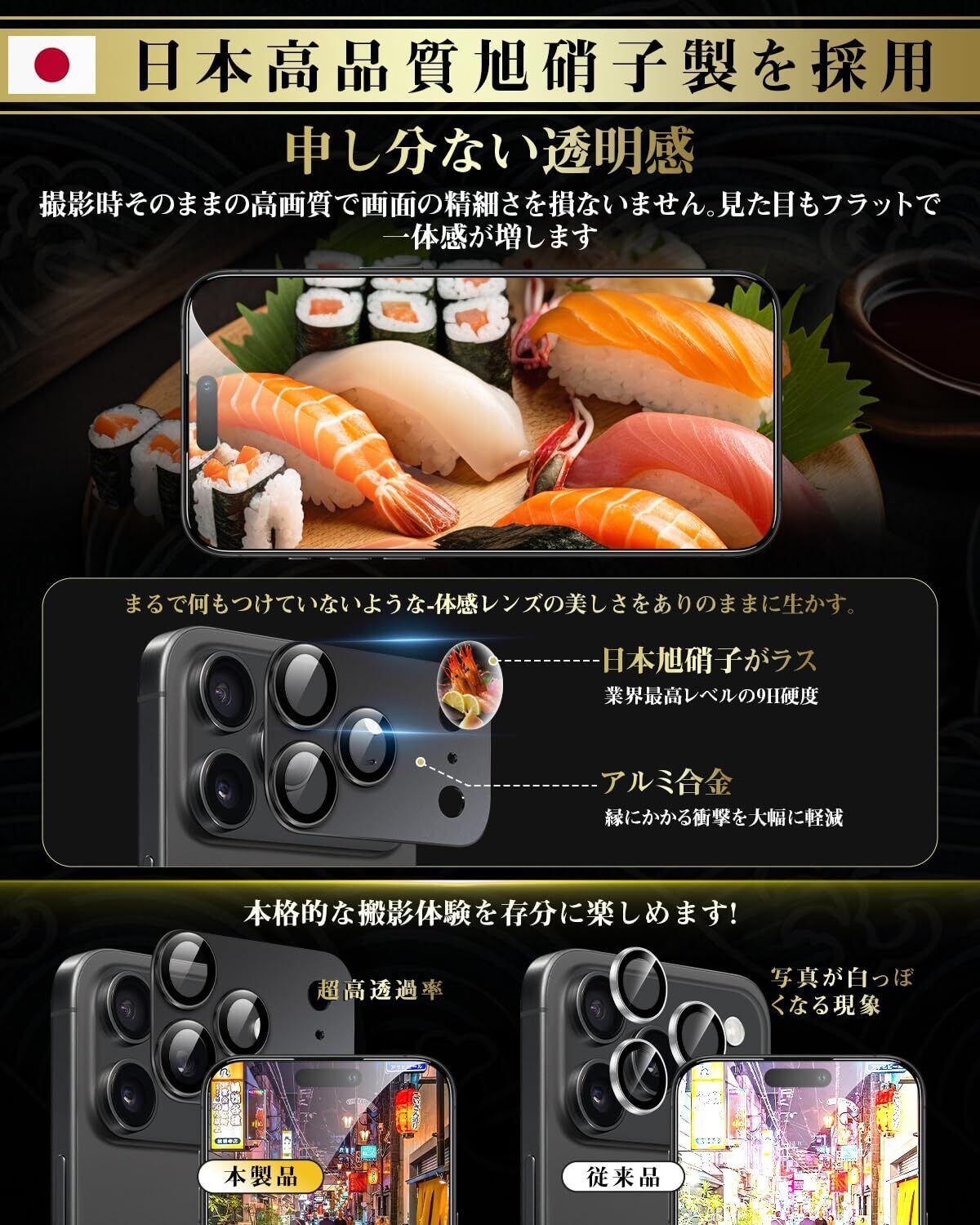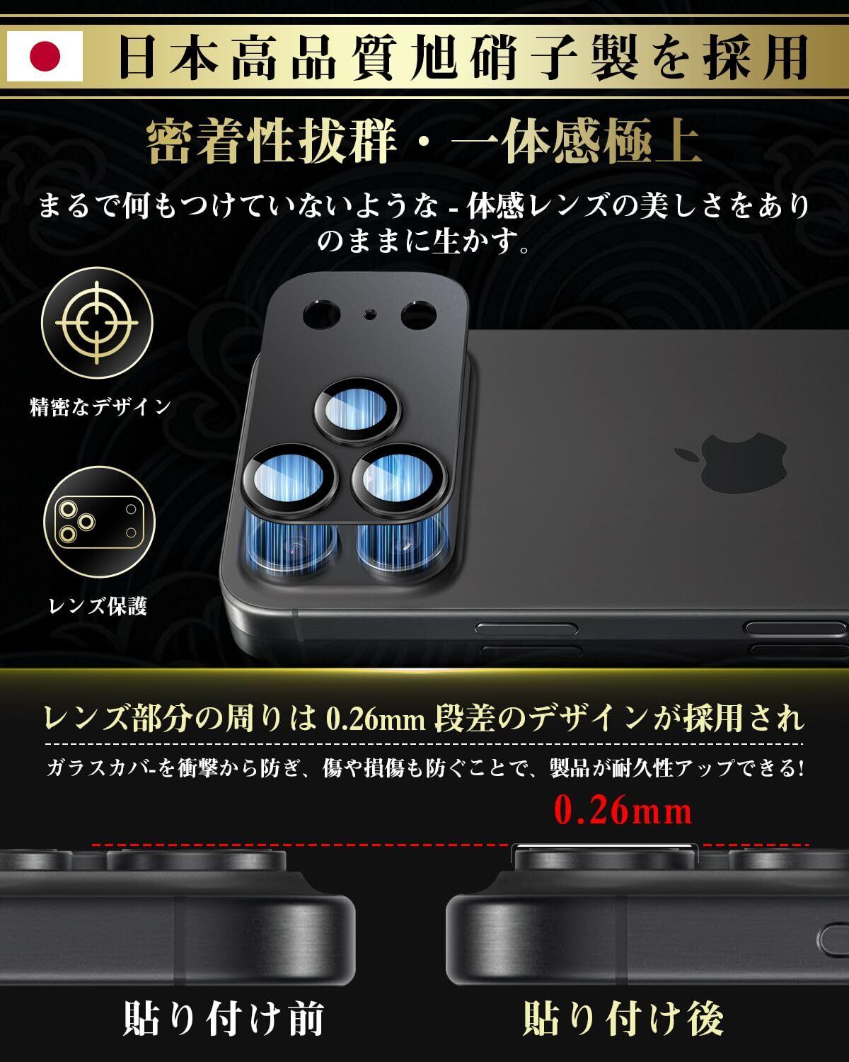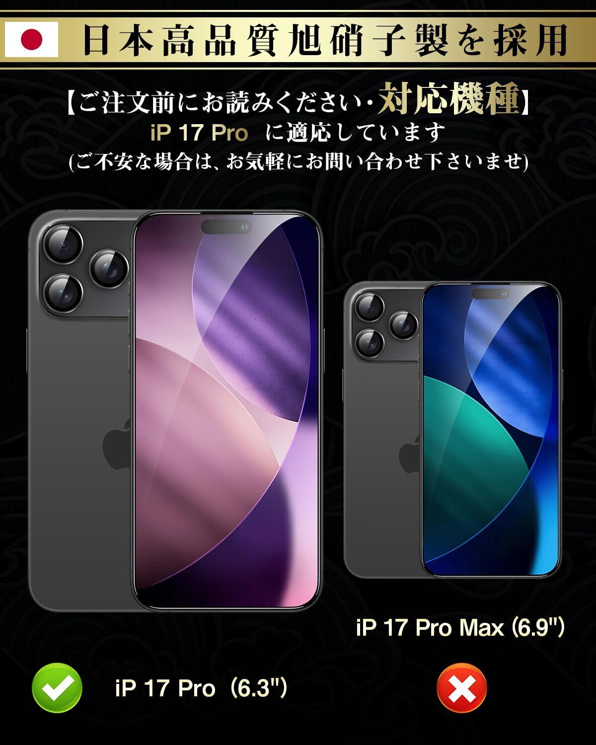 3⃣【全面保護!防塵効果】ガラスカメラフィルムは大切な17 Proを全面保護するため、3眼のレンズ部分だけではなく、台座部分も全方位カバーで、剥がれにくくて全面保護できます。広い面を覆うため、カバーの密着度合いが非常に高くて、レンズのみのカバーと比較して防塵効果も高くて、ホコリが入りにくい構造です。