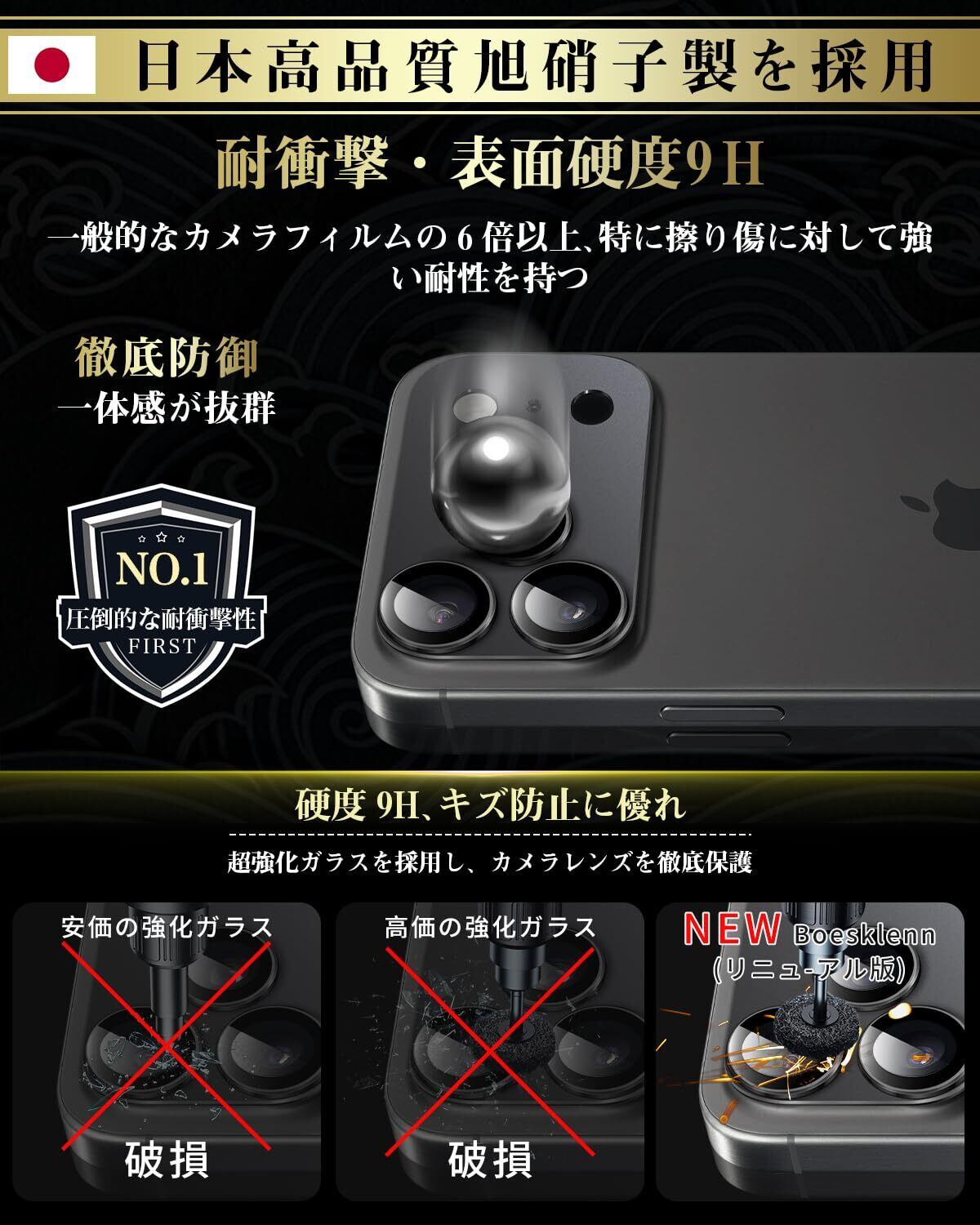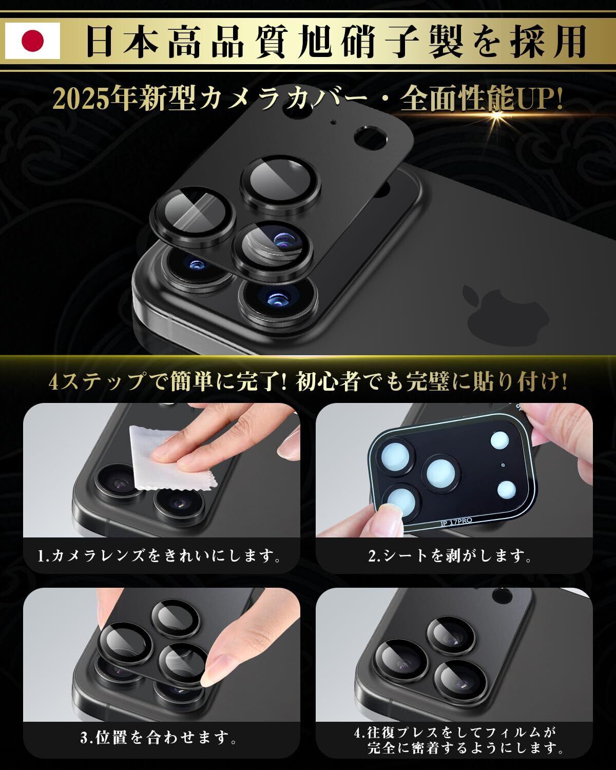 Boesklenn 対応 いphone17pro カメラ保護 対応 iPhone 17 Pro レンズカバー【ぴったりフィット一体感 アルミ合金+9H強化ガラス日本旭硝子素材製】全面保護/高透過率 対応 iPhone 17 Pro カメラ保護カバー ブラック