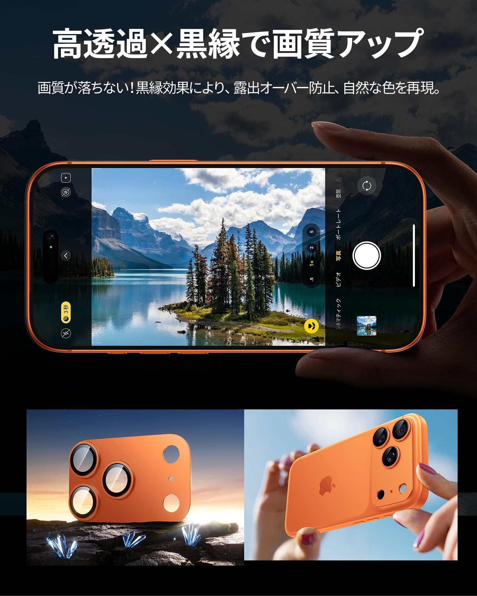 【高画質が続く】iPhone 17 pro レンズカバーはレンズ周囲を黒縁することにより、フラッシュ撮影時の乱反射や白飛びを防止。レンズ保護に最適な高透過率ガラスで、クリアな画質をそのまま再現します。