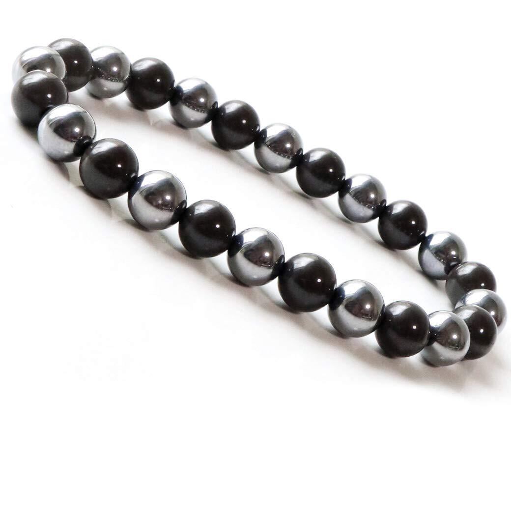 [GOLD STONE] テラヘルツ鉱石 北投石 黒色 ブラック ブレスレット 8mm 遠赤外線 パワーストーン 内周 約15cm