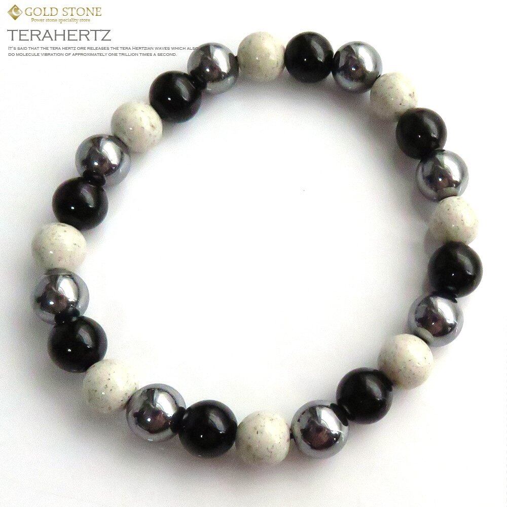 [GOLD STONE] テラヘルツ鉱石 × 北投石 × モリオン (黒水晶) ブレスレット 8mm 24粒