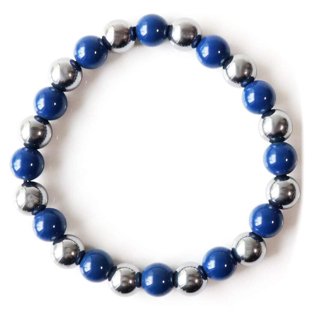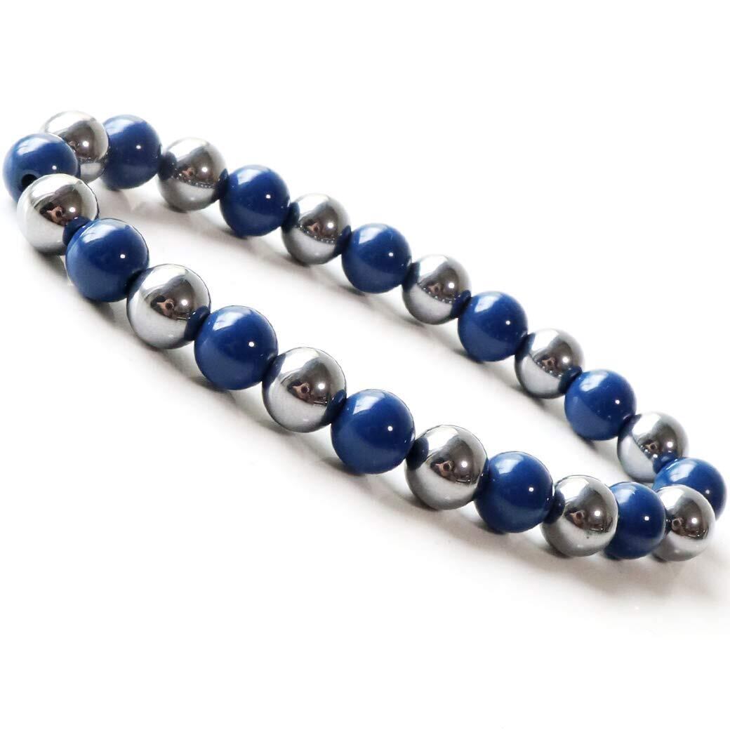 [GOLD STONE] テラヘルツ鉱石 北投石 青色 ブルー ブレスレット 8mm 遠赤外線 パワーストーン 内周 約15cm