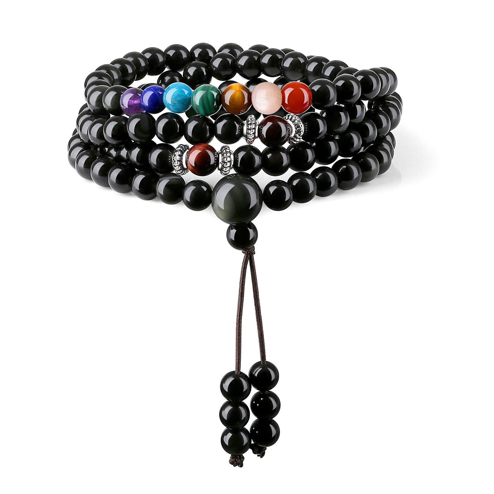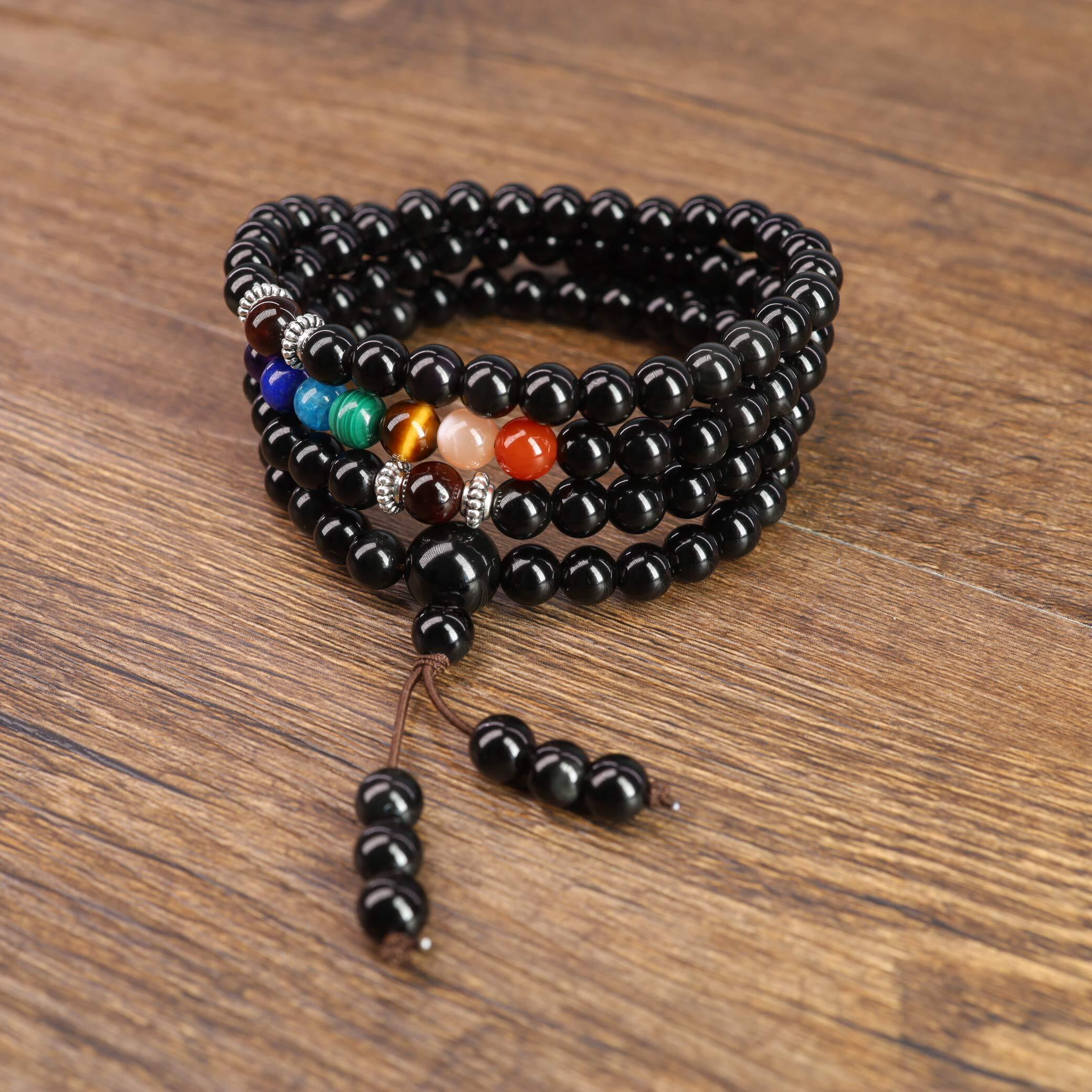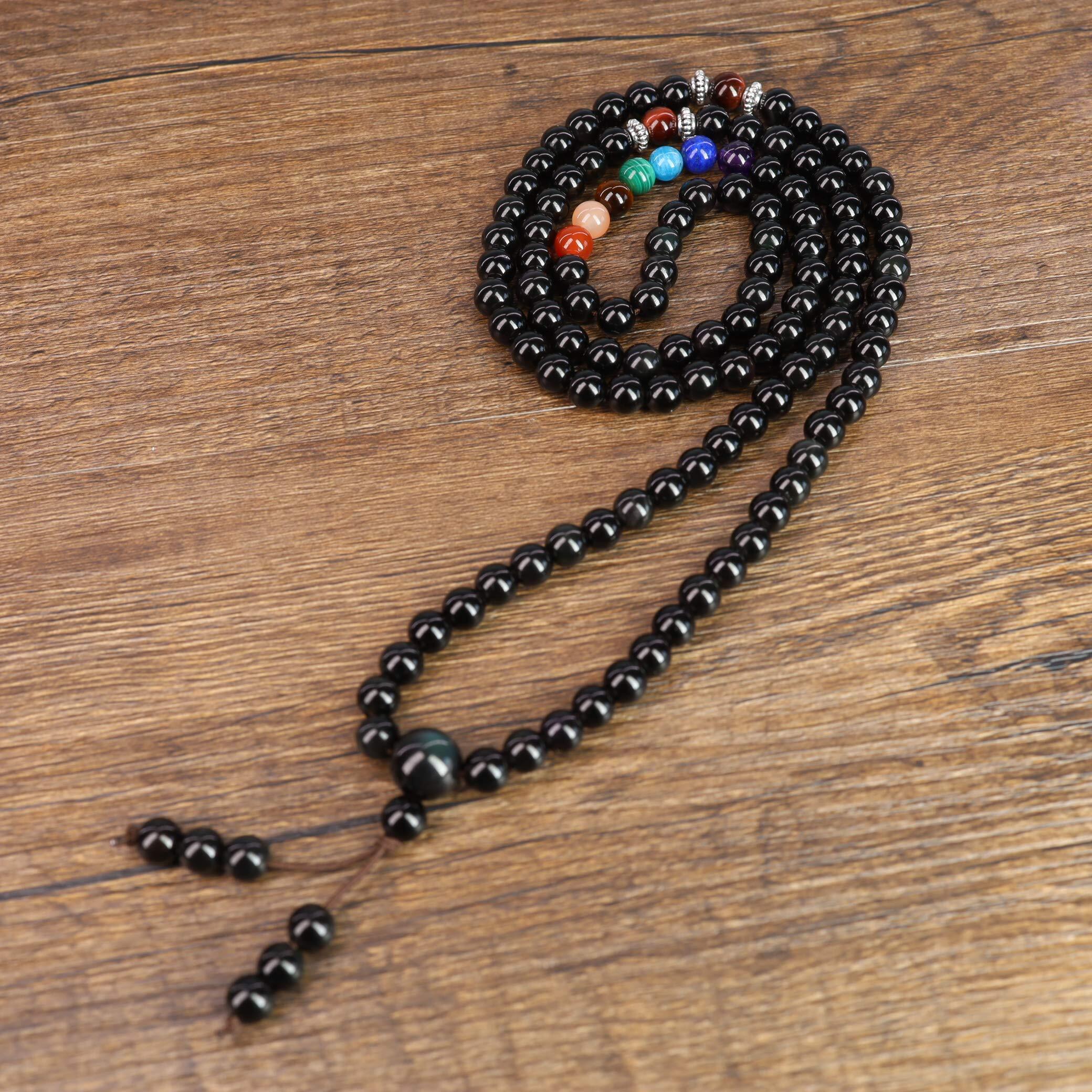 [コアイ]COAI 108玉オブシディアン チャクラ ブレスレット 四連数珠