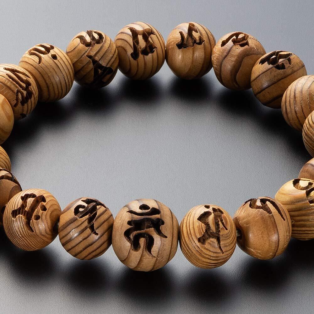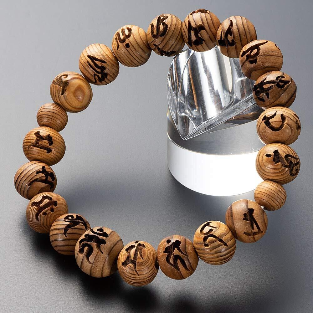 仏壇屋 滝田商店 特選 腕輪念珠 木玉ブレスレット 不動真言彫入り 屋久杉 10mm玉(尺六玉)◆ 最強の厄除け 梵字 数珠 ブレスレット・数珠ブレス・不動明王 お守り 【滝田商店発行 証明書付】