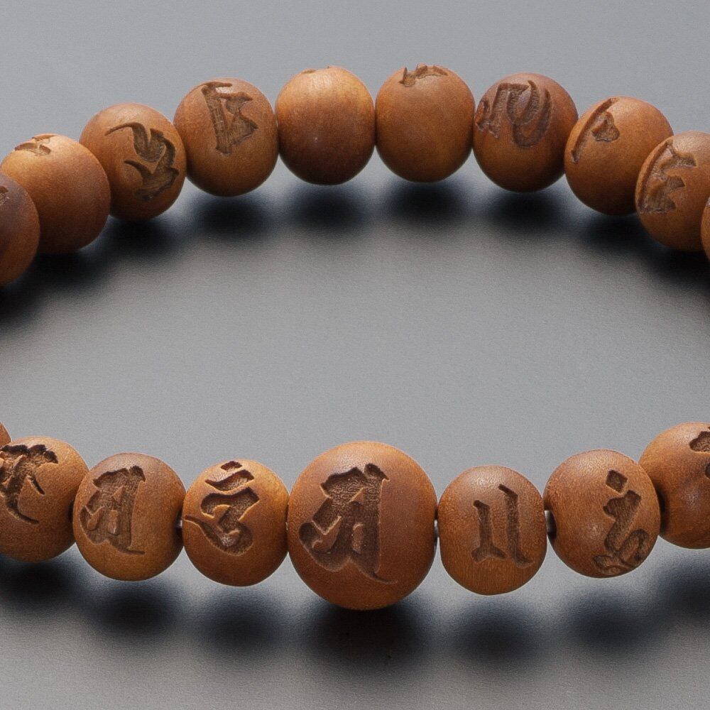 仏壇屋 滝田商店 特選 腕輪念珠 木玉ブレスレット 光明真言彫入り インド白檀 8mm玉(尺二玉)◆ 最強の厄除け 梵字 数珠ブレスレット・数珠ブレス・老山白檀・四国 お遍路 お守り 【滝田商店発行 証明書付】
