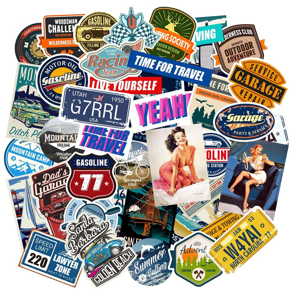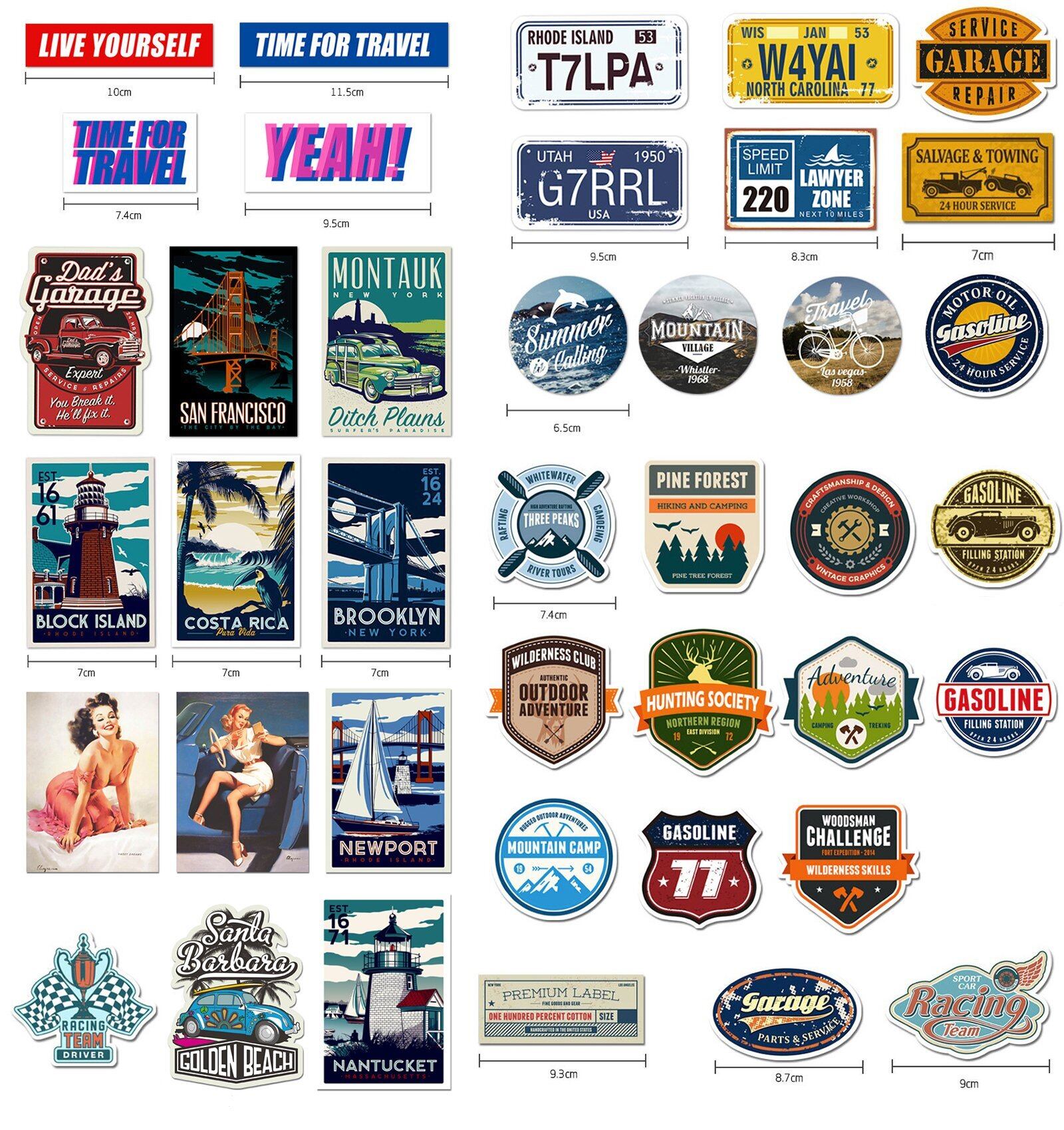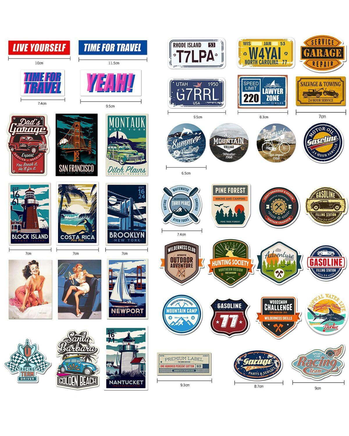 Chileeany「35枚セット」 防水 ステッカー レトロ ビンテージ スーツケース 防水紙 - スーツケース、スケートボード、ノート、車、自転車、 パソコン(World Tour)
