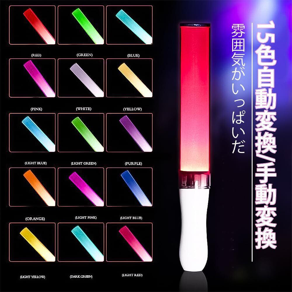 ペンライト 15色 ライト カラーチェンジ 操作簡単 プラスチック 電池式 手のひらサイズ 持ち運び便利 応援用品 コンサート 夜の宴会 お祭り キャンプ カラオケ忘年会パーティーなど適用