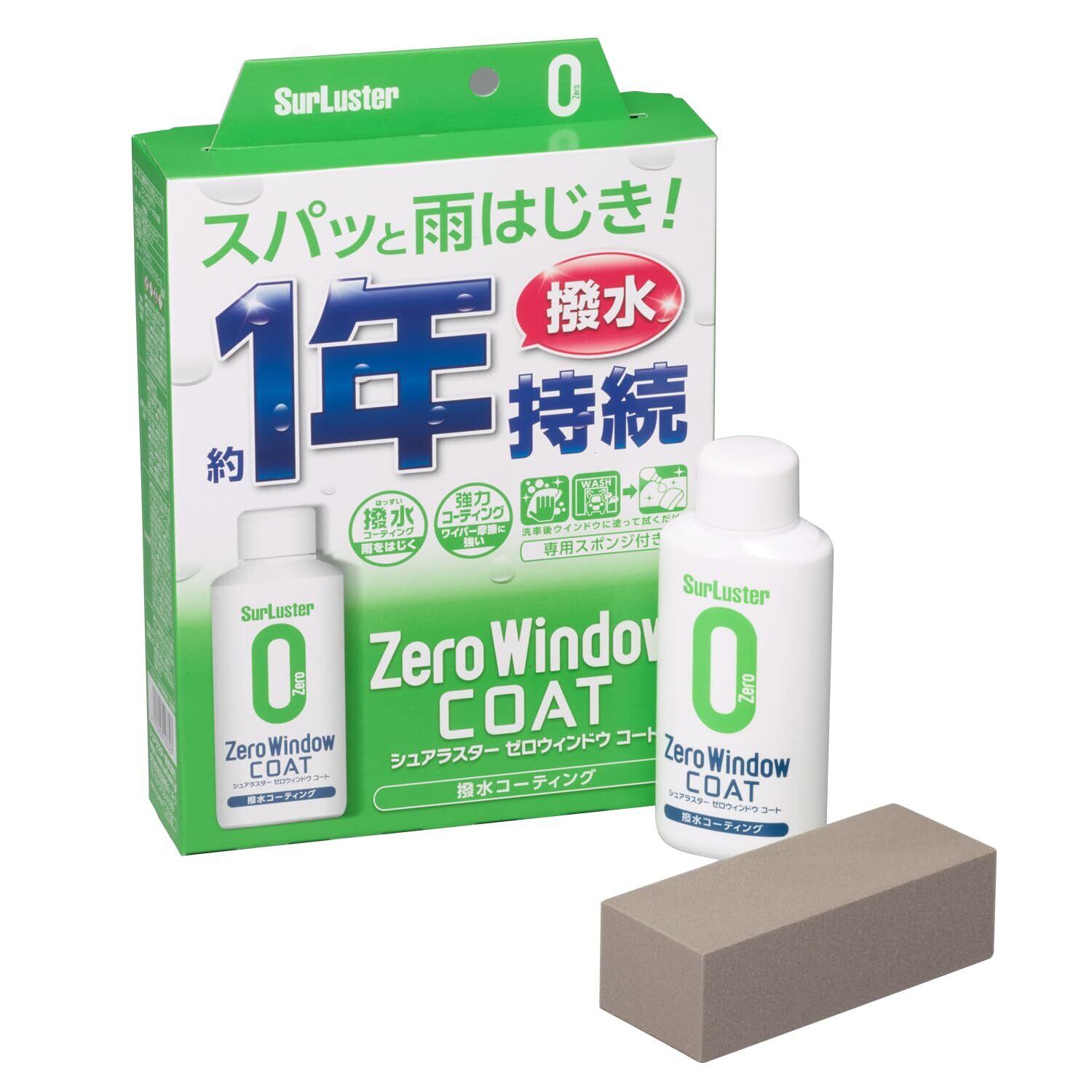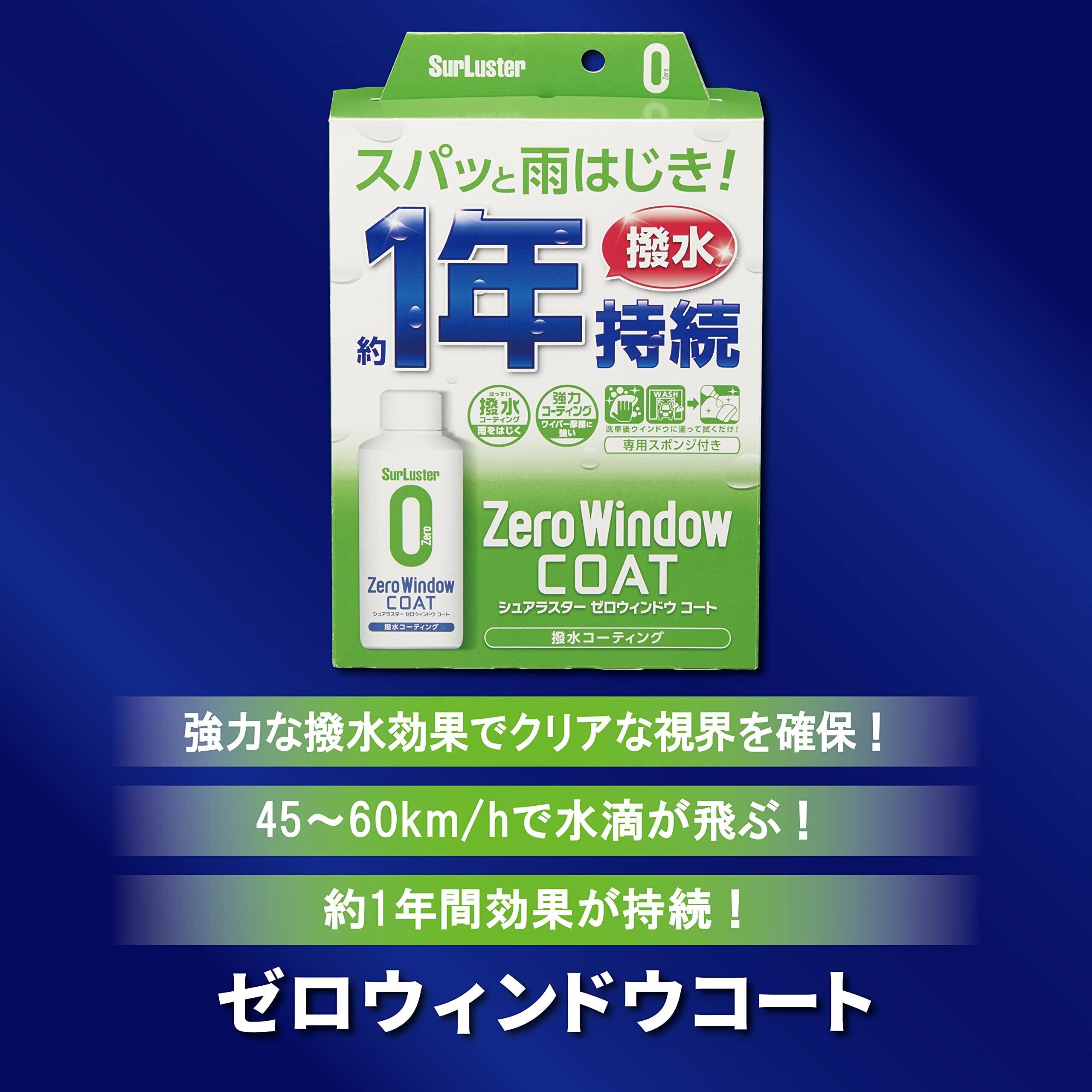 SurLuster(シュアラスター) ゼロウィンドウ コート 80ml 約耐久 塗りこみタイプ ガラス撥水剤 コーティング ガラス系コーティング フロントガラス サイドミラー 付属スポンジ付き 洗車 S-130