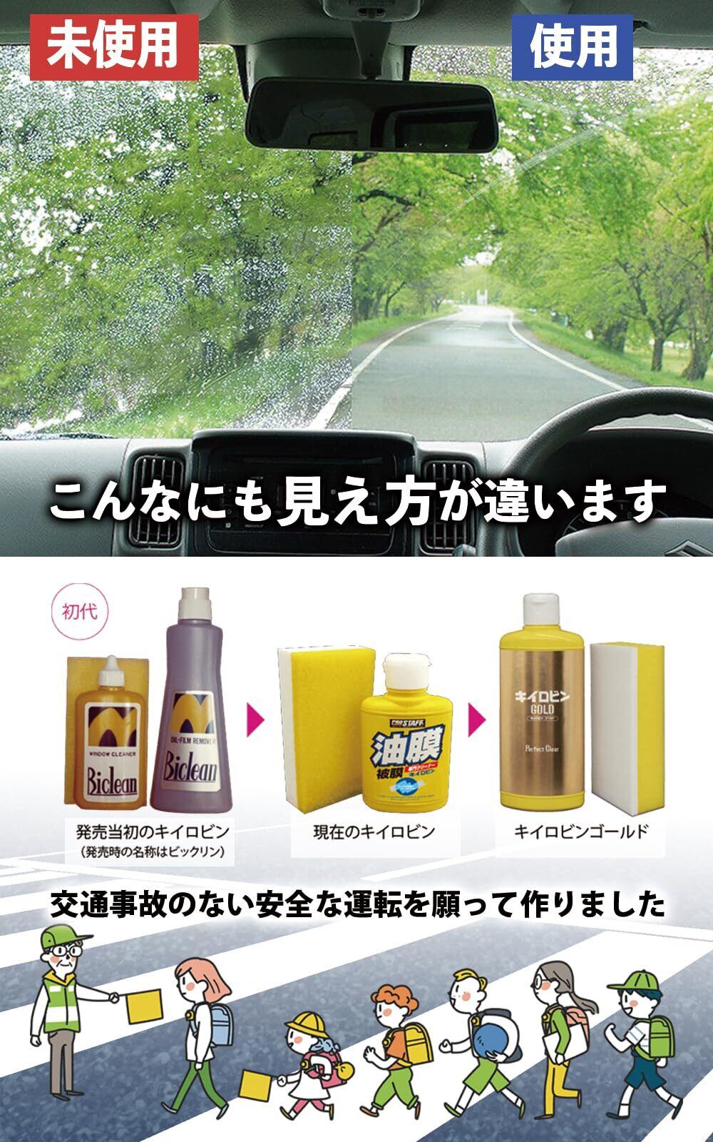 プロスタッフ(Prostaff) 洗車用品 ウィンドウ ガラス 油膜 被膜 落とし剤 キイロビン ゴールド 200g スポンジ付 ガラスクリーナー 水垢 落とし A-11