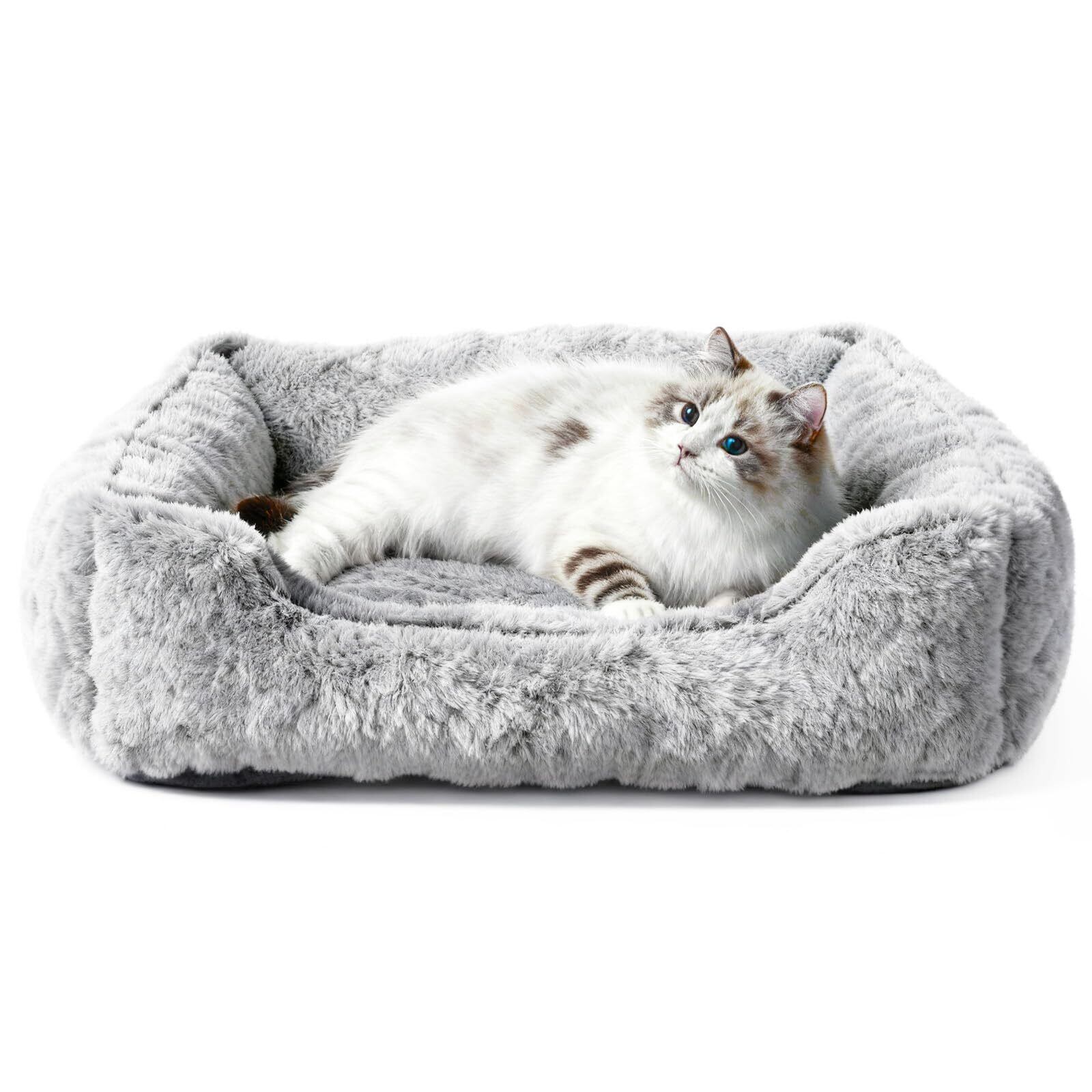 Gemarwel 犬 猫 ベッド 冬 温かい ペットベッド【3A抗菌防臭 仿兎毛】クッション 取り外し可能 通年 洗える ふわふわ 柔らか 通気性 小型犬 猫用 ペットソファー (50L × 40W × 15H CM, ダークグレー)
