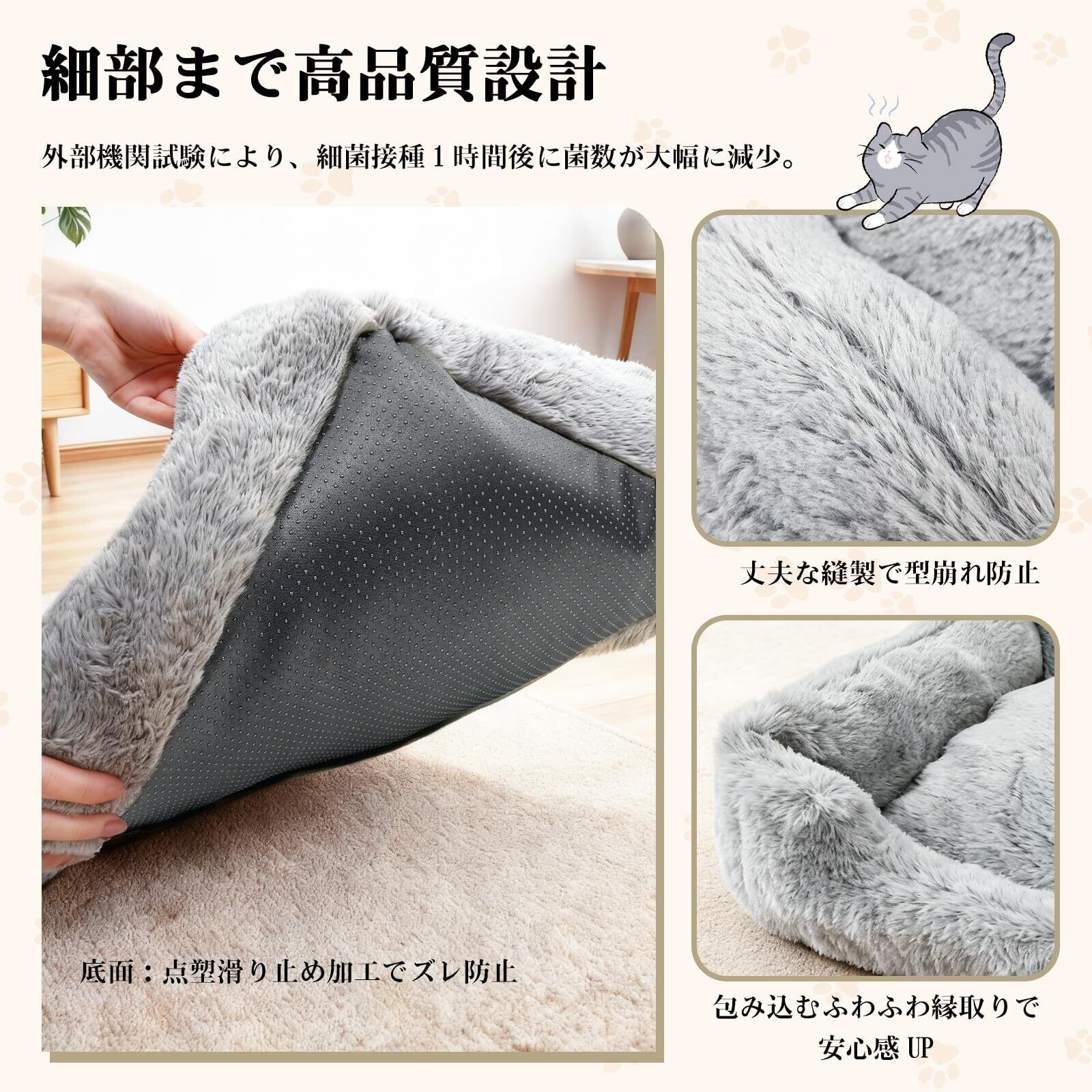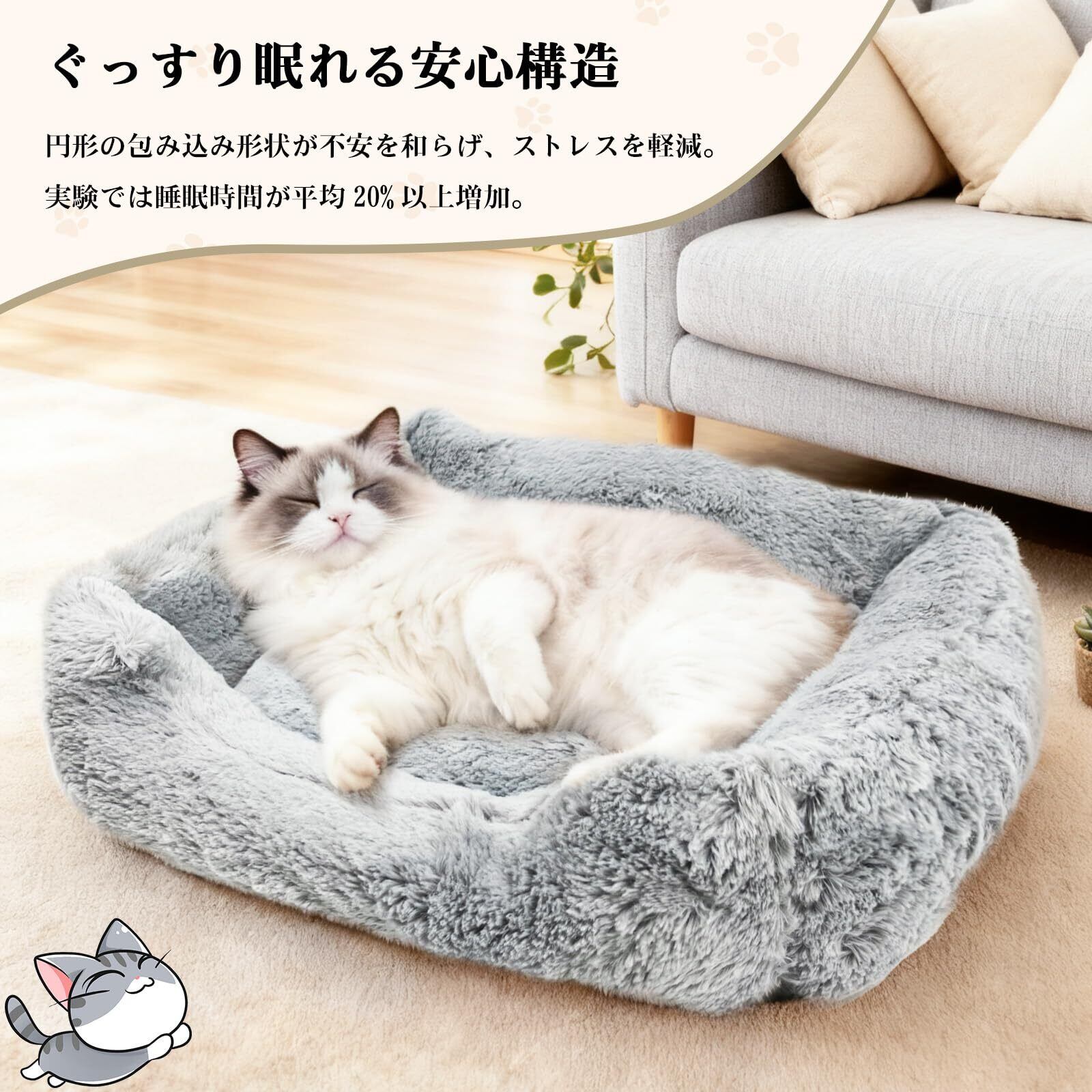 【ふわふわ仿兎毛素材で極上のやわらかさ】仿兎毛を使用したふわふわの表面は、まるで抱きしめられるような柔らかさ。ペットがリラックスしてぐっすり眠れる快適な寝心地を提供します。