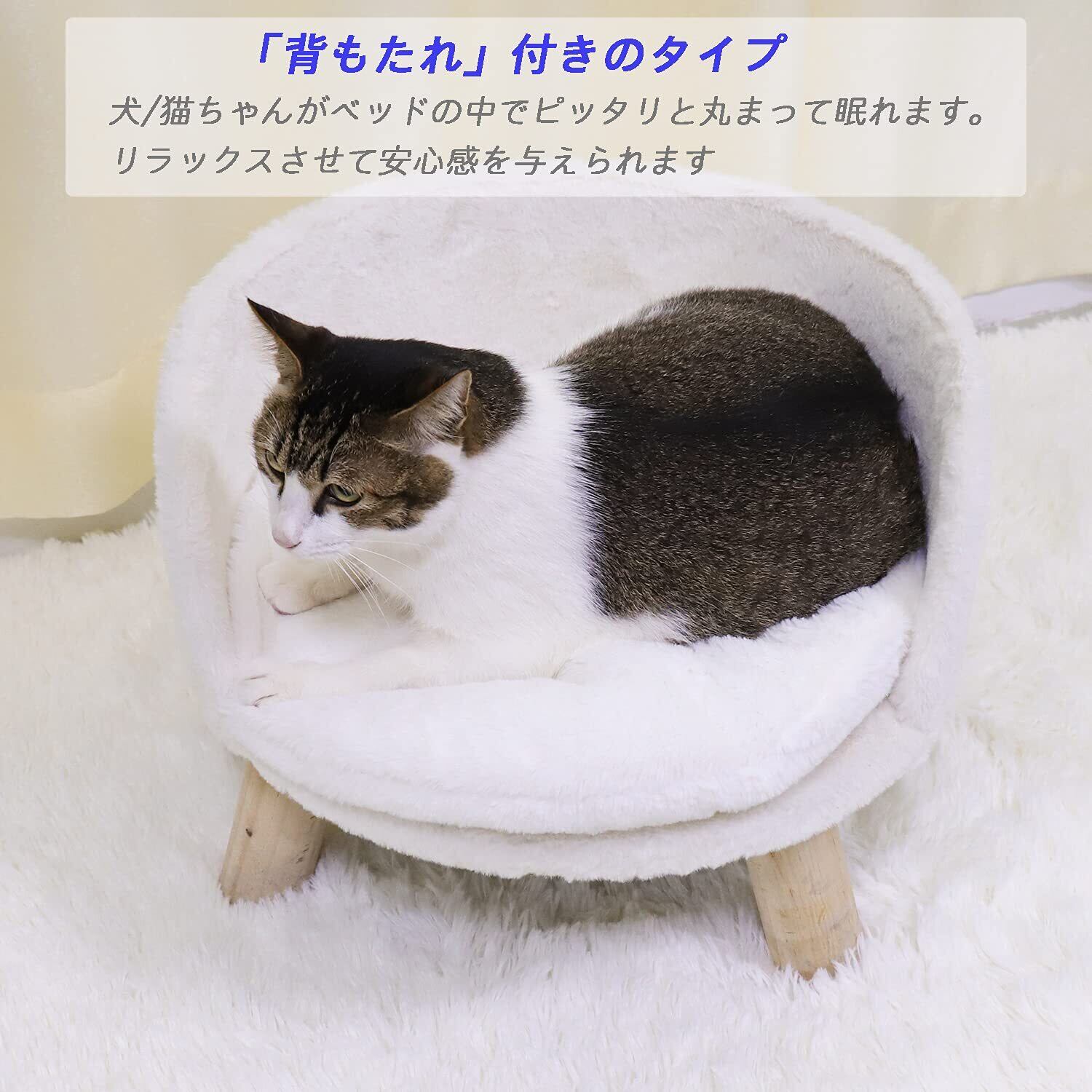【猫ちゃんに安心感を与えられる】おしゃれでかわいい見た目の椅子型のキャットベッドで、「背もたれ」付きなので、 猫がベッドの中でピッタリと丸まって眠れるため、リラックスして過ごせます
