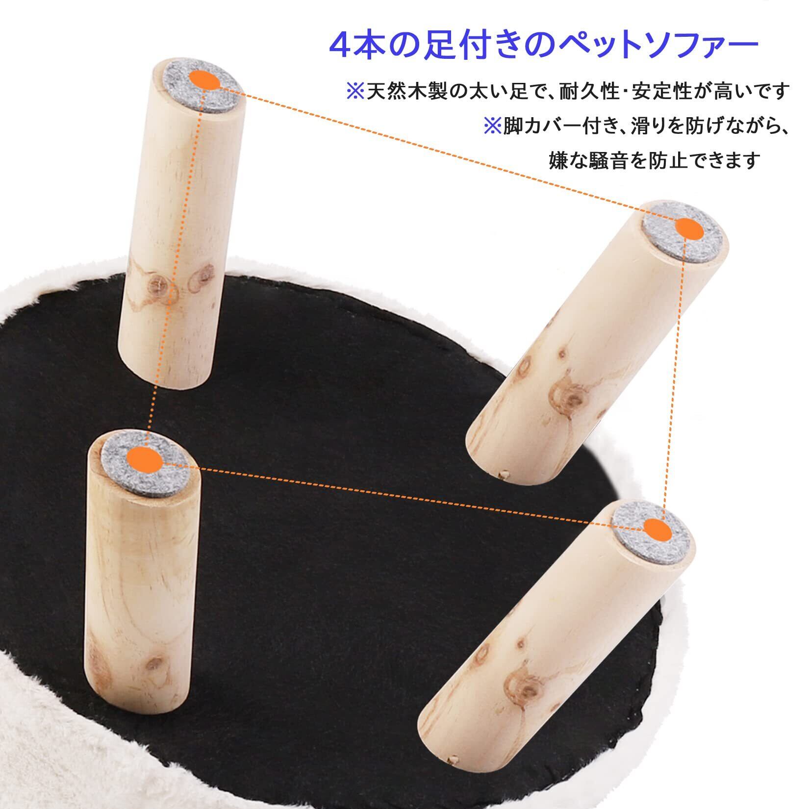 【足付き・安定性抜群】ペットベッドの底部に4本の脚が付いているため、 作りもしっかりしていて安定感があります。 また、椅子脚カバーが付いているため、滑りを防げながら、嫌な騒音を防止できます
