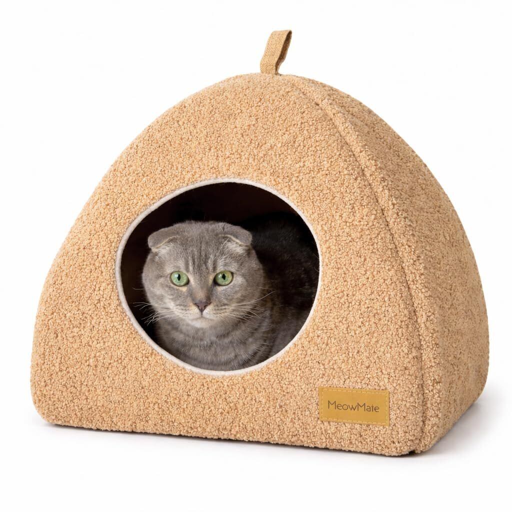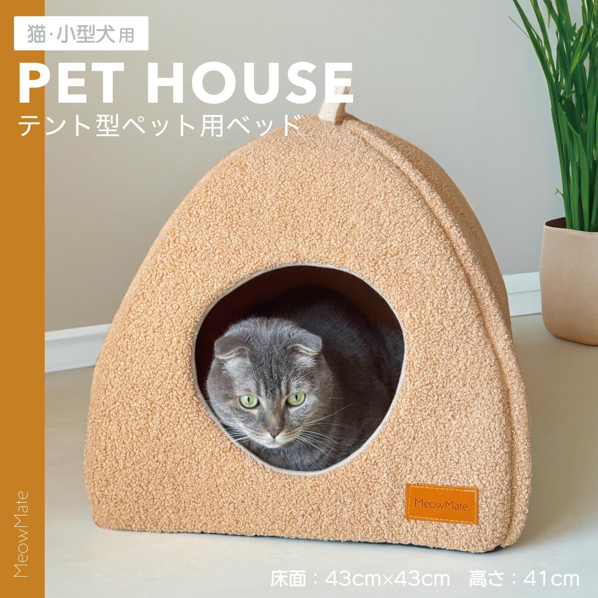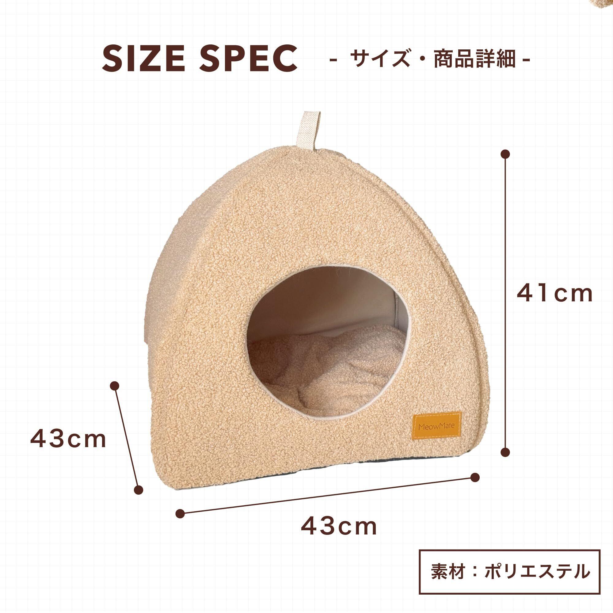 MeowMate 猫のベッド テントタイプ クッション付き ボア素材 ベージュ ドーム型 2WAY キャット 猫用ハウス 隠れ家 かわいい