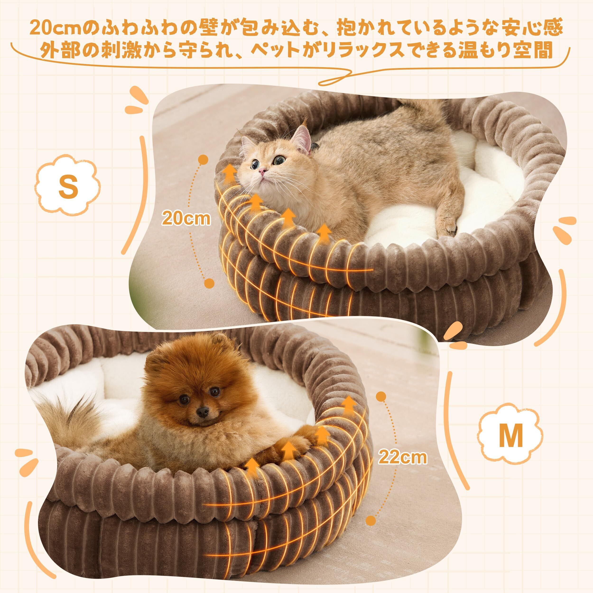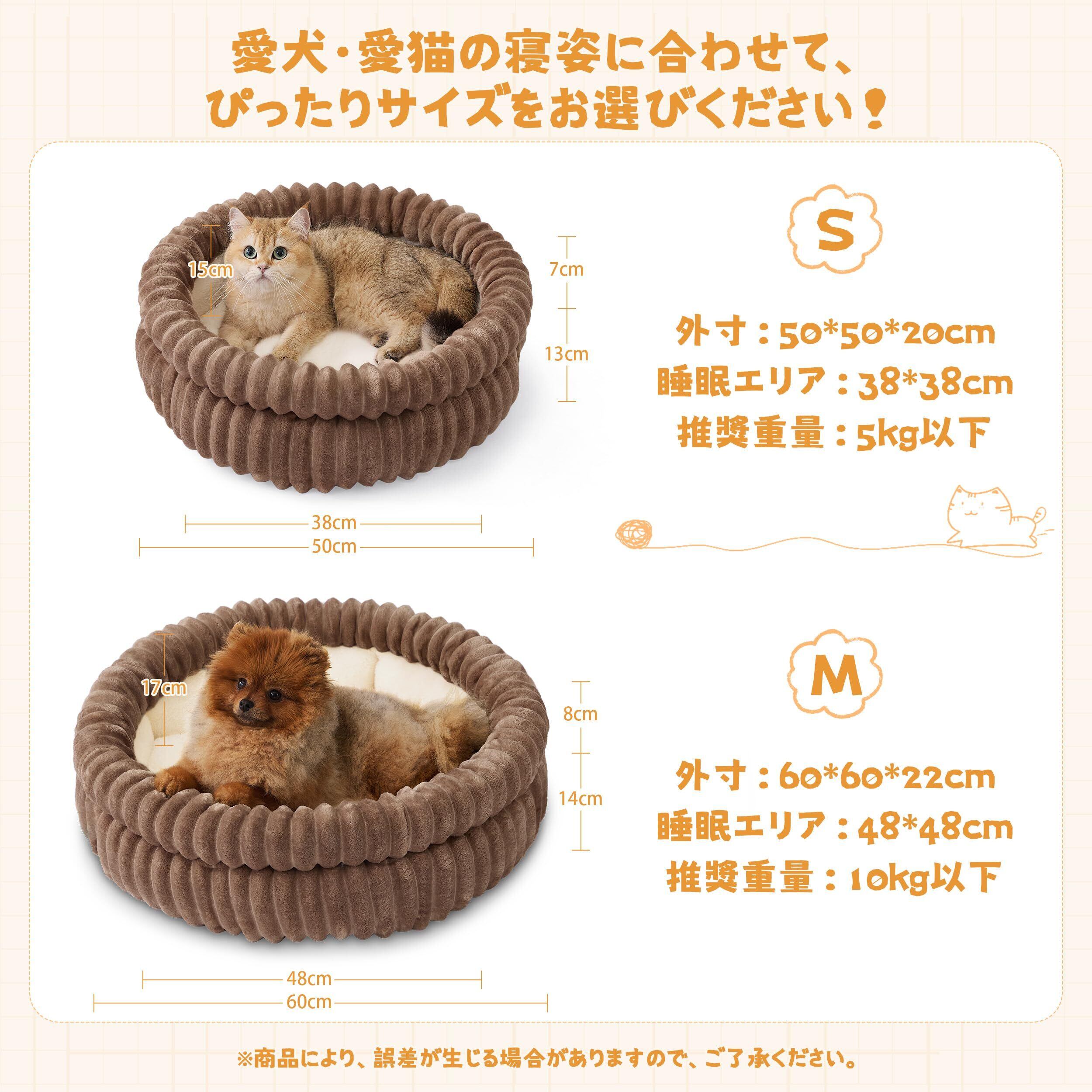 猫 犬 ベッド 猫ベッド 丸型 冬 ふわふわ 犬用 ペットベッド 吸湿発熱 保温 洗える 滑り止め クッション 暖かい 寒さ対策 丸洗いOK(外寸50Lx50Wx20Hcm ブラウン)
