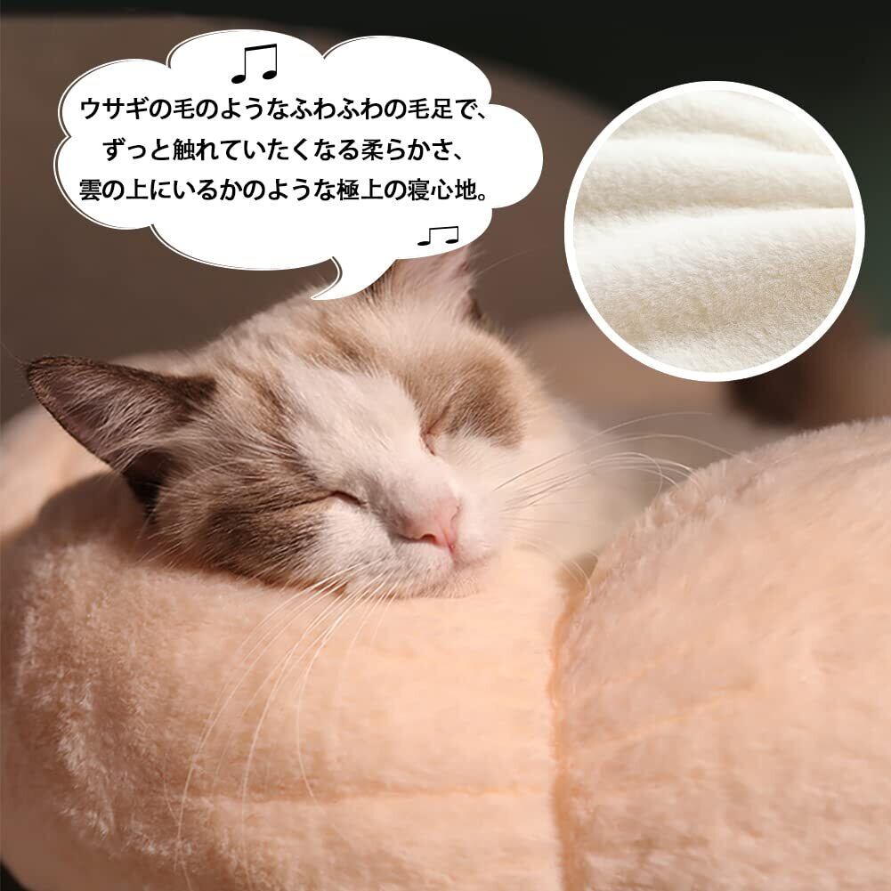 【体にフィットするラウンド型】ふんわりとろけるように体にフィットする可愛い花型ペットベッドが新登場!ウサギの毛のようなふわふわの毛足でずっと触れていたくなる柔らかさで、雲の上にいるかのような極上の寝心地。シックなデザインがオシャレなラウンド型、犬猫の体に沿うように、寝姿に合わせて優しく包みます。たっぷりふかふかのフチにあごのせして、うっとり眠れます。猫ちゃんだと、毎日ふみふみしたくなるもふもふ感です。