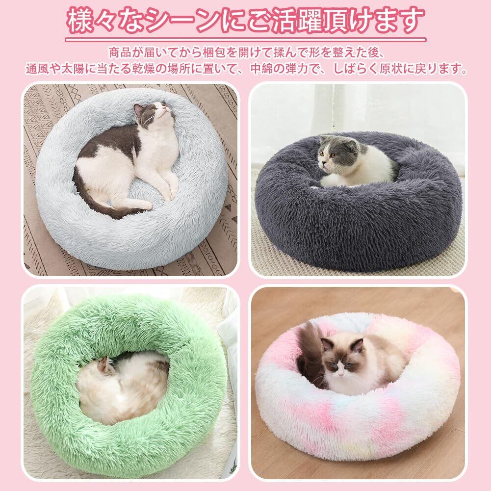 猫 犬 クッション ペットベッド ふわふわ もこもこ ぐっすり眠る 暖かい ドーナツ ラウンド型 可愛い 防寒 寒さ対策 洗える 滑り止め ふかふか猫犬兼用 ソファー 通年 ペット用品