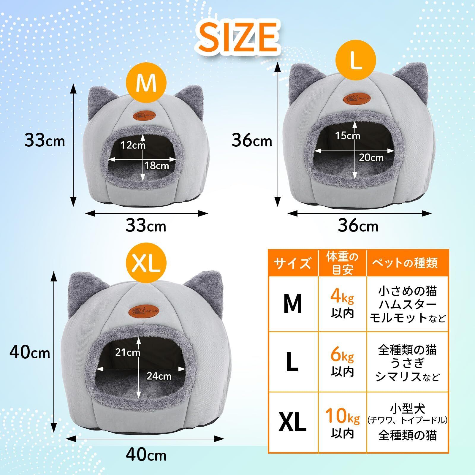 【サイズ】XLサイズ:直径40cm 高さ40cm 穴の大きさ21cm×24cm Lサイズ:直径36cm 高さ36cm 穴の大きさ15cm×20cm Mサイズ:直径33cm 高さ33cm 穴の大きさ12cm×18cm