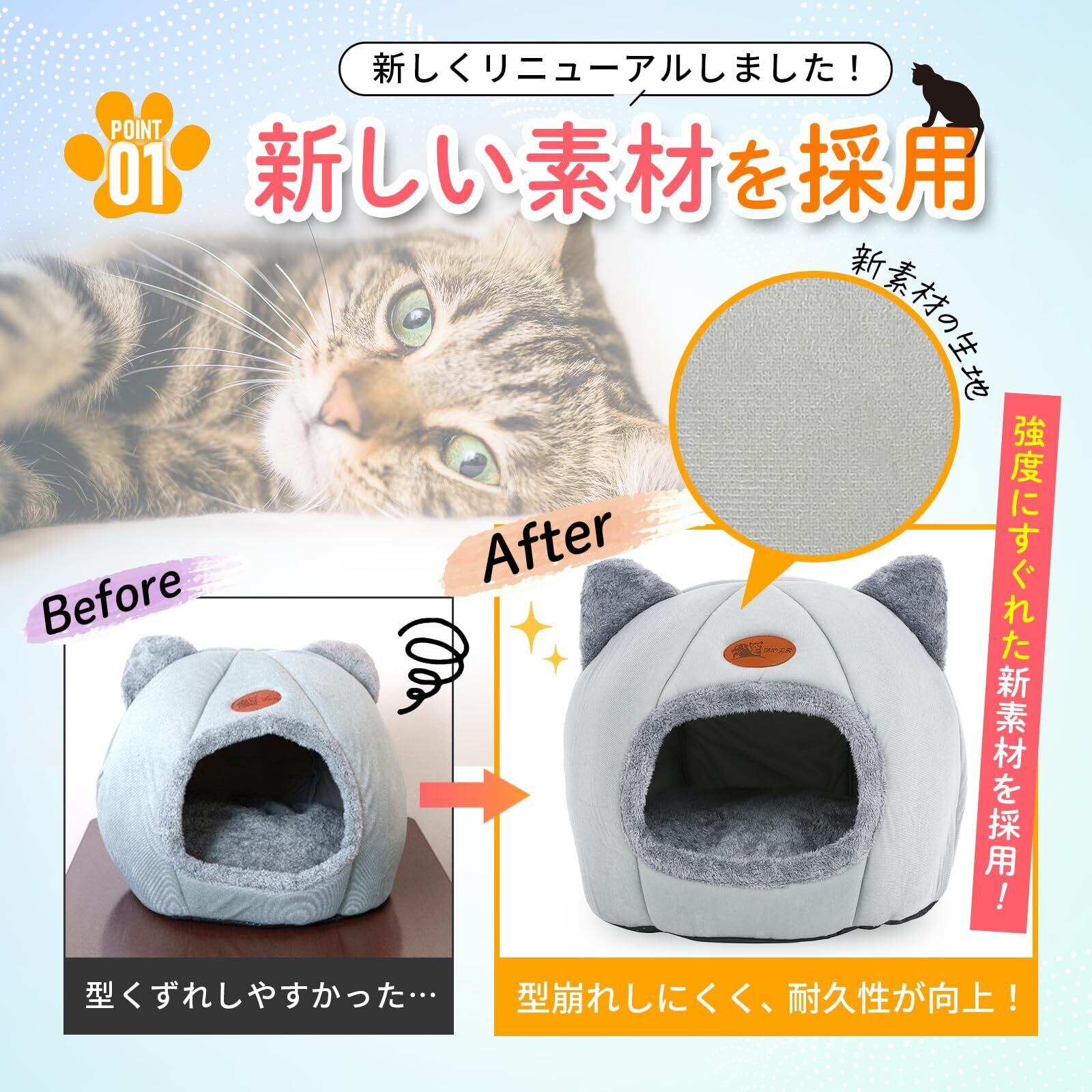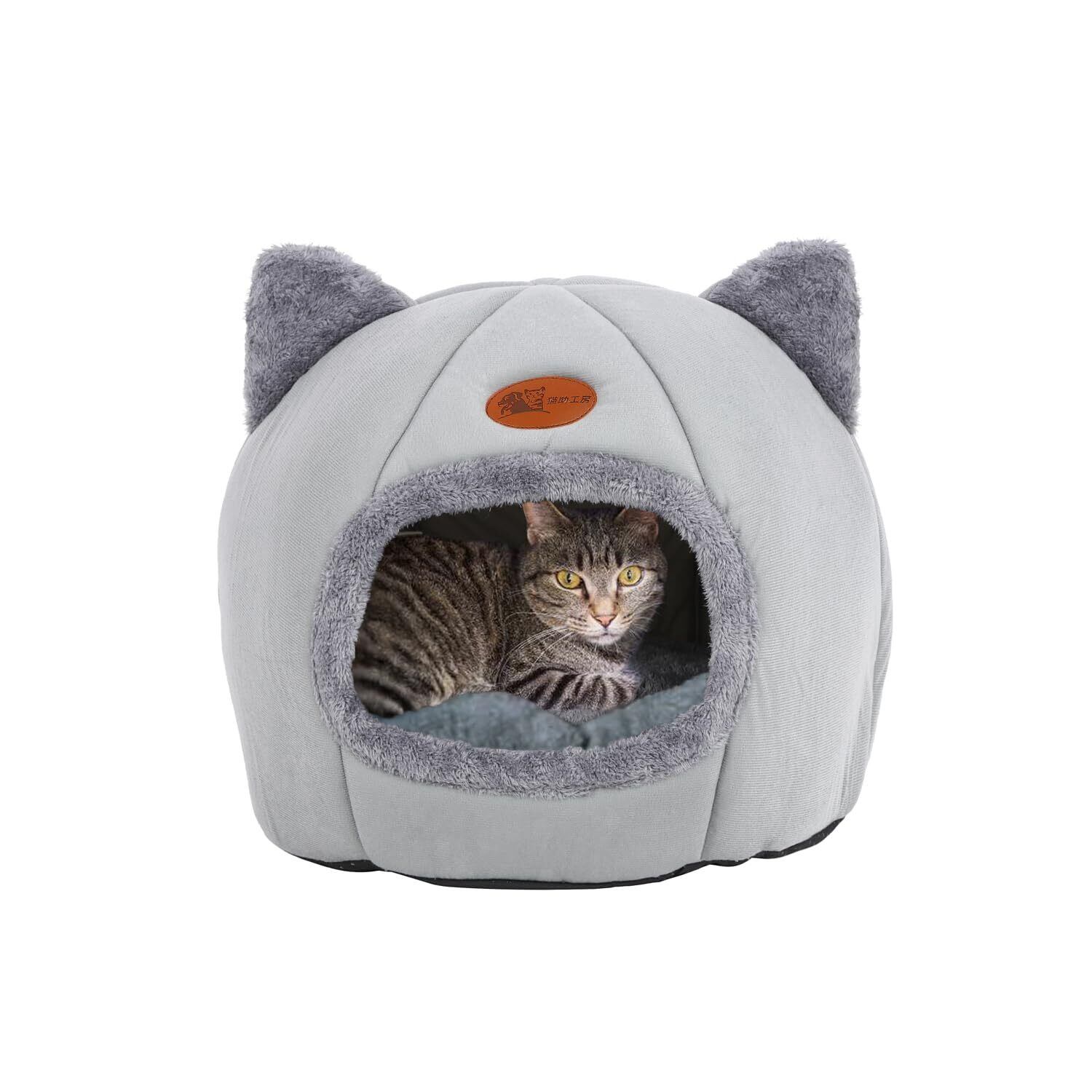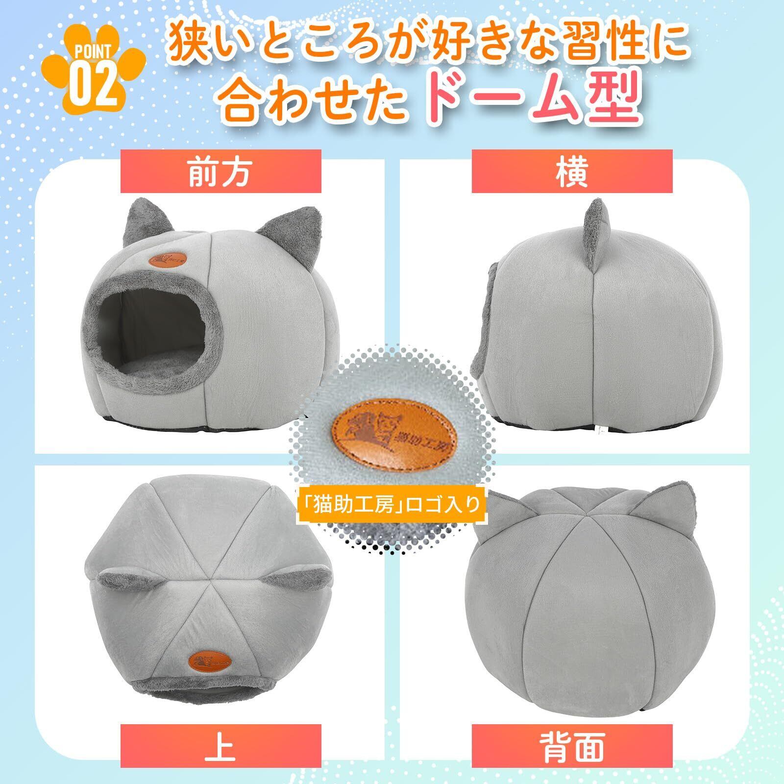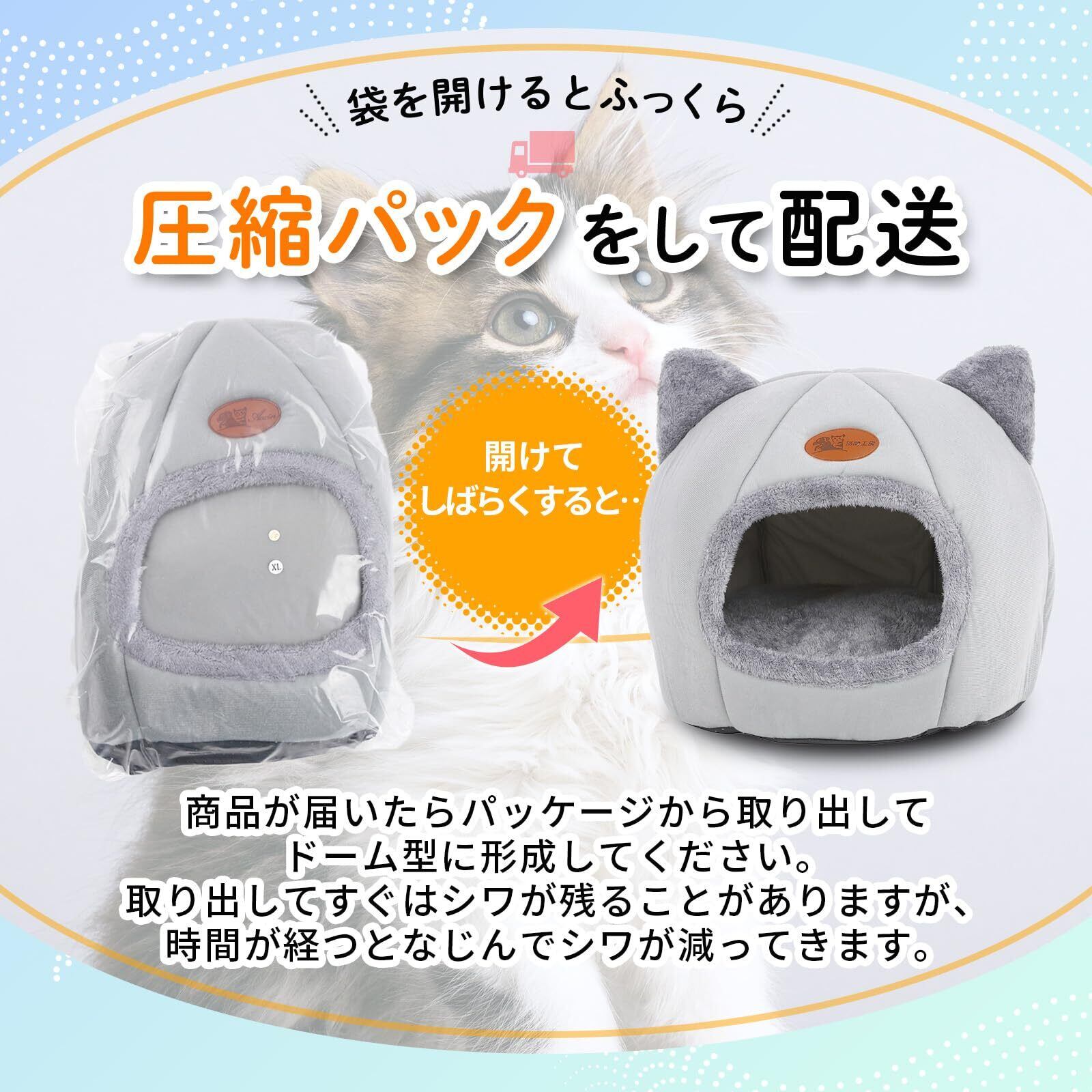 NSK 猫ベッド ペットベッド キャットハウス ドーム型 暖かい ふわふわ 寒さ対策 室内用 洗える クッション付 (グレー, M)
