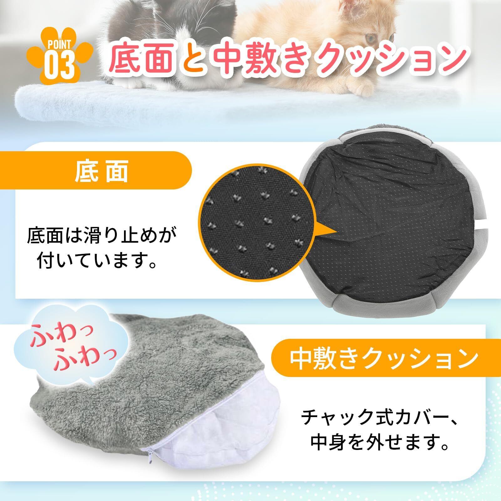 【形状】ドーム型のベッドで綿が程よく詰まっているので保温性が高く、しっかり熱を閉じこめてくれます。