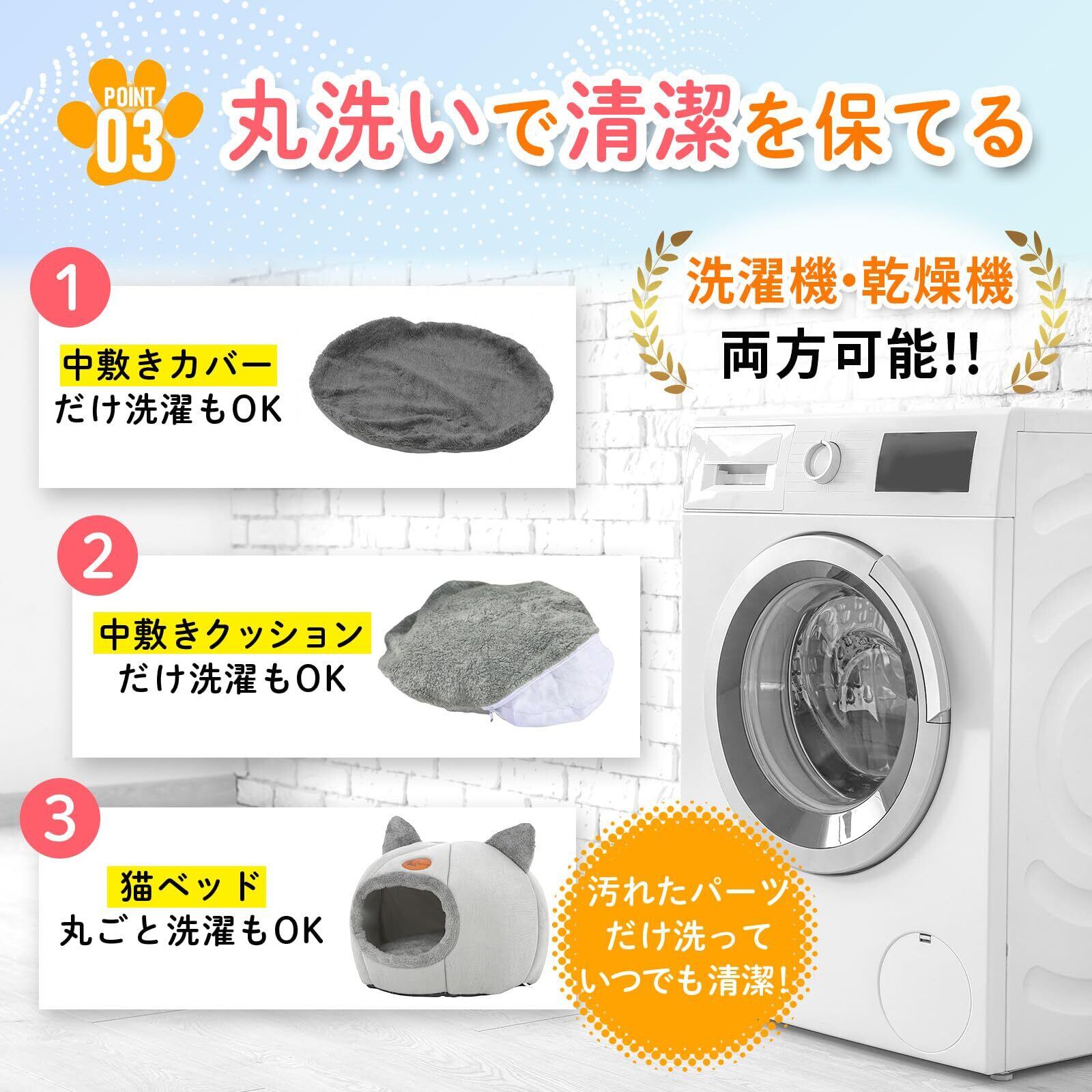 【水で洗える】水洗い可能で、クッションごとまとめて洗濯機にかけることができます。