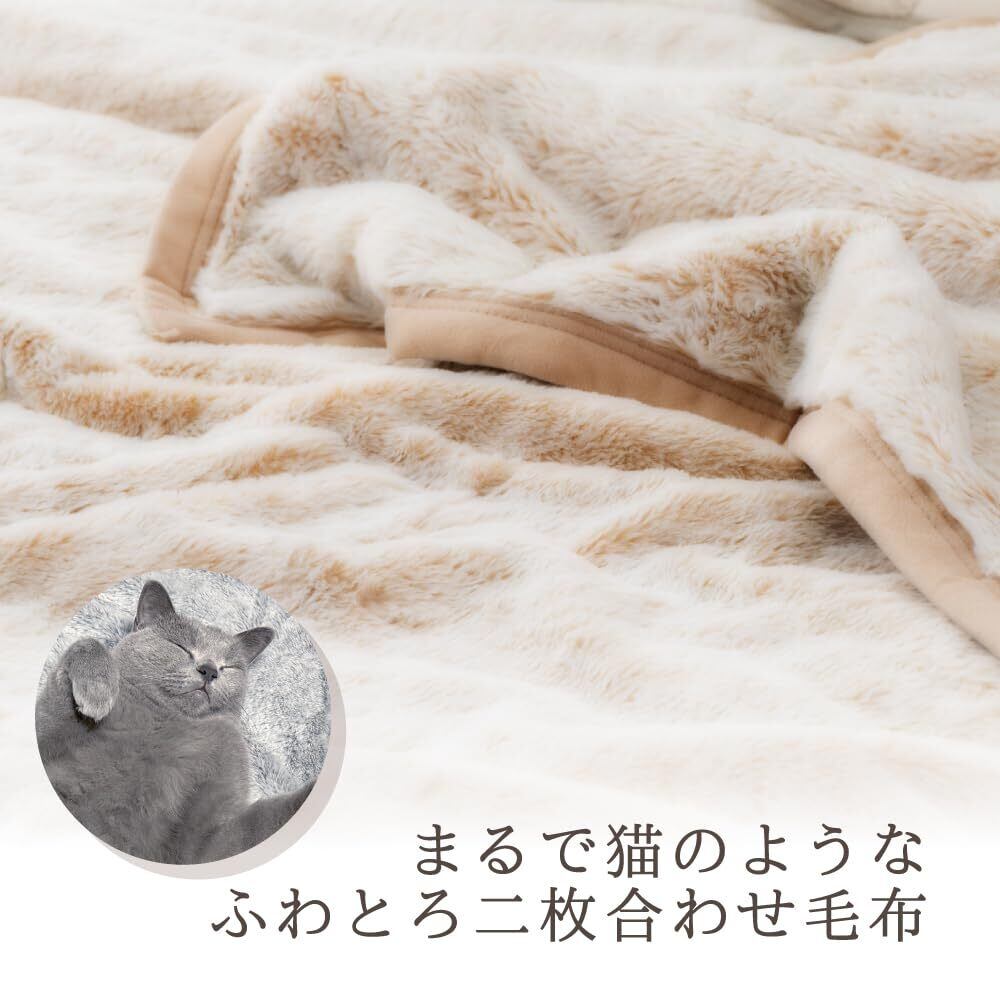 tobest【まるで猫と一緒に添い寝してる気分】毛布 ブランケット 2枚合わせ 140×200cm 猫タッチ毛布 ベージュ 掛け毛布 暖かい 厚手 冬用 ふわふわ 冬 あったか なめらか もふもふ 柔らかく肌触り