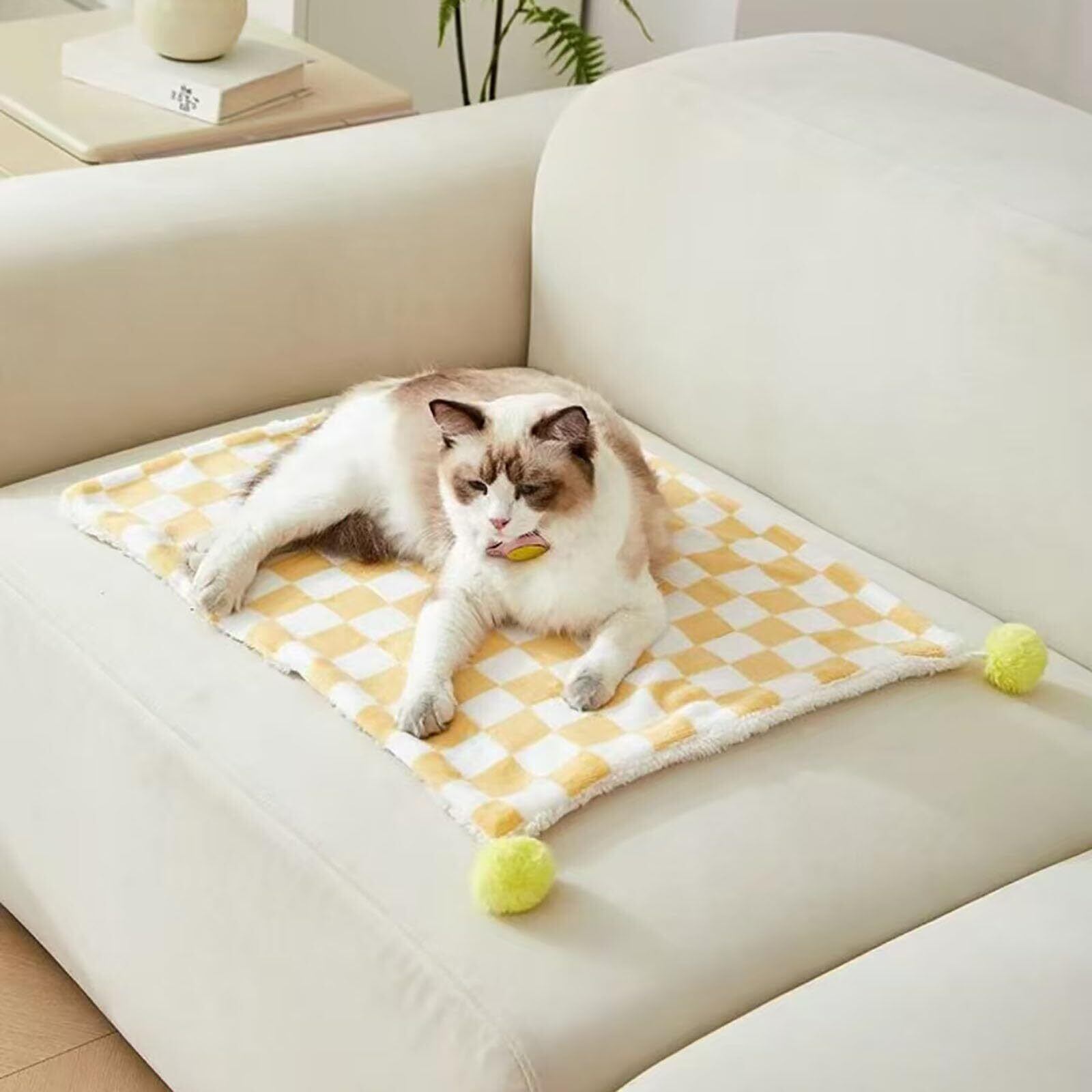 ペット用 ブランケット 毛布 犬猫 布団 可愛い ひざ掛け スクエア型 暖かい 秋冬の防寒 保温 洗える 防寒マット お部屋 車内 犬小屋 多機能 タオル 犬 猫 兼用 毛布 敷き物 お出かけ 小中大型ペット用 (青色, S)