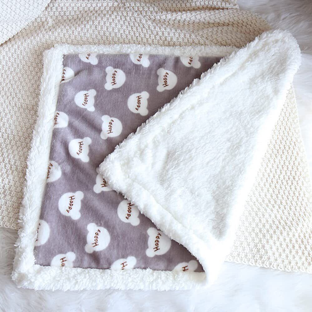 ペット用 ブランケット 毛布 犬猫用 -HIMATI タオル マット 暖かい ふわふわ 防寒 保温 洗える 可愛い柄 四季適用 ベッドカバー -Gray-S