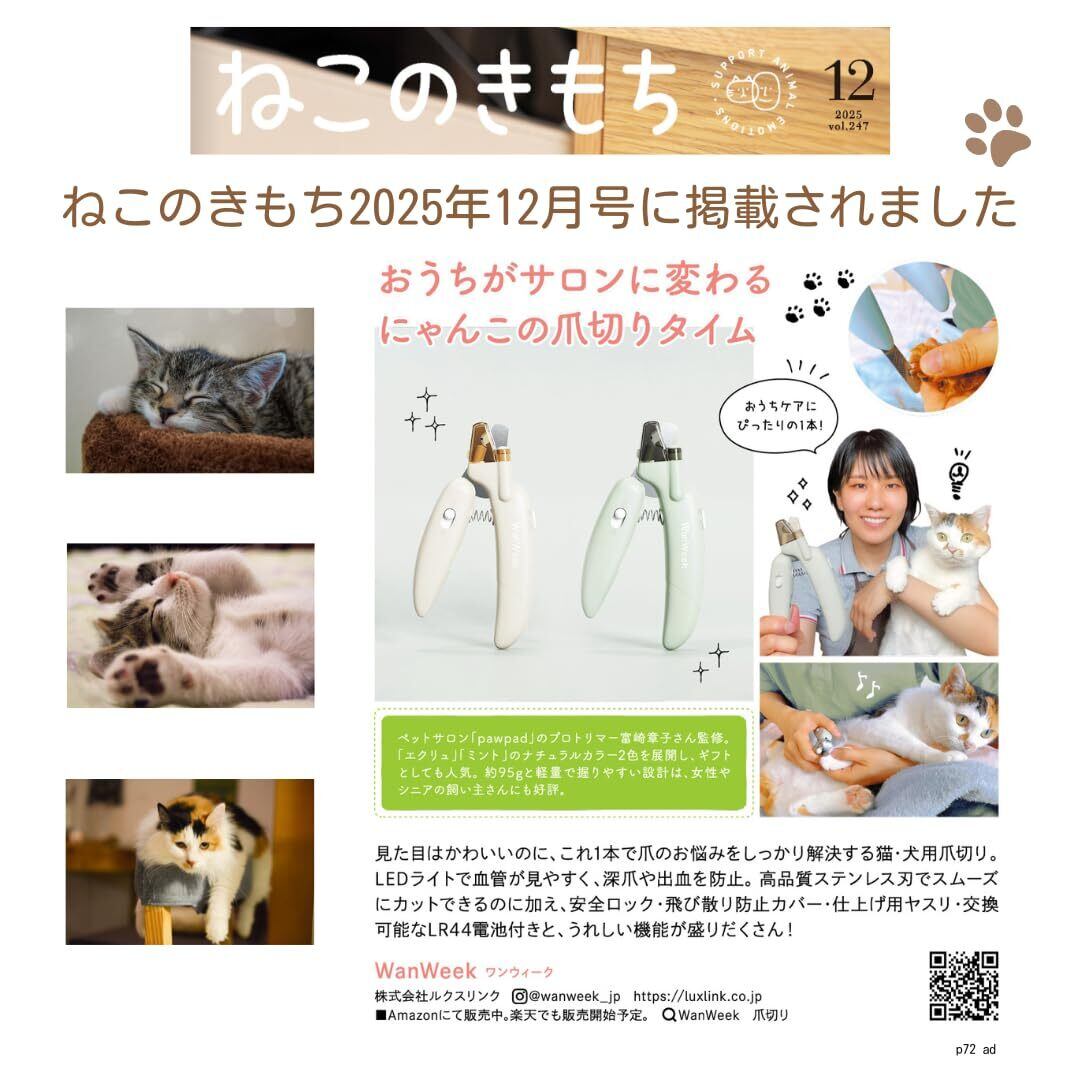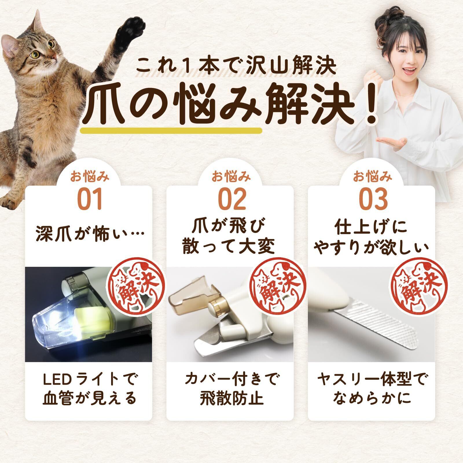 【ねこのきもち掲載モデル】WanWeek 猫・犬用爪切り トリマー監修 LEDライト 飛散防止カバー ステンレス刃 ヤスリ内蔵 安全ロック 深爪防止 猫 爪切り 猫のつめきり 超小型犬~小型犬 つめきり 初心者向け ギフト対応 おしゃれ (エクリュ)