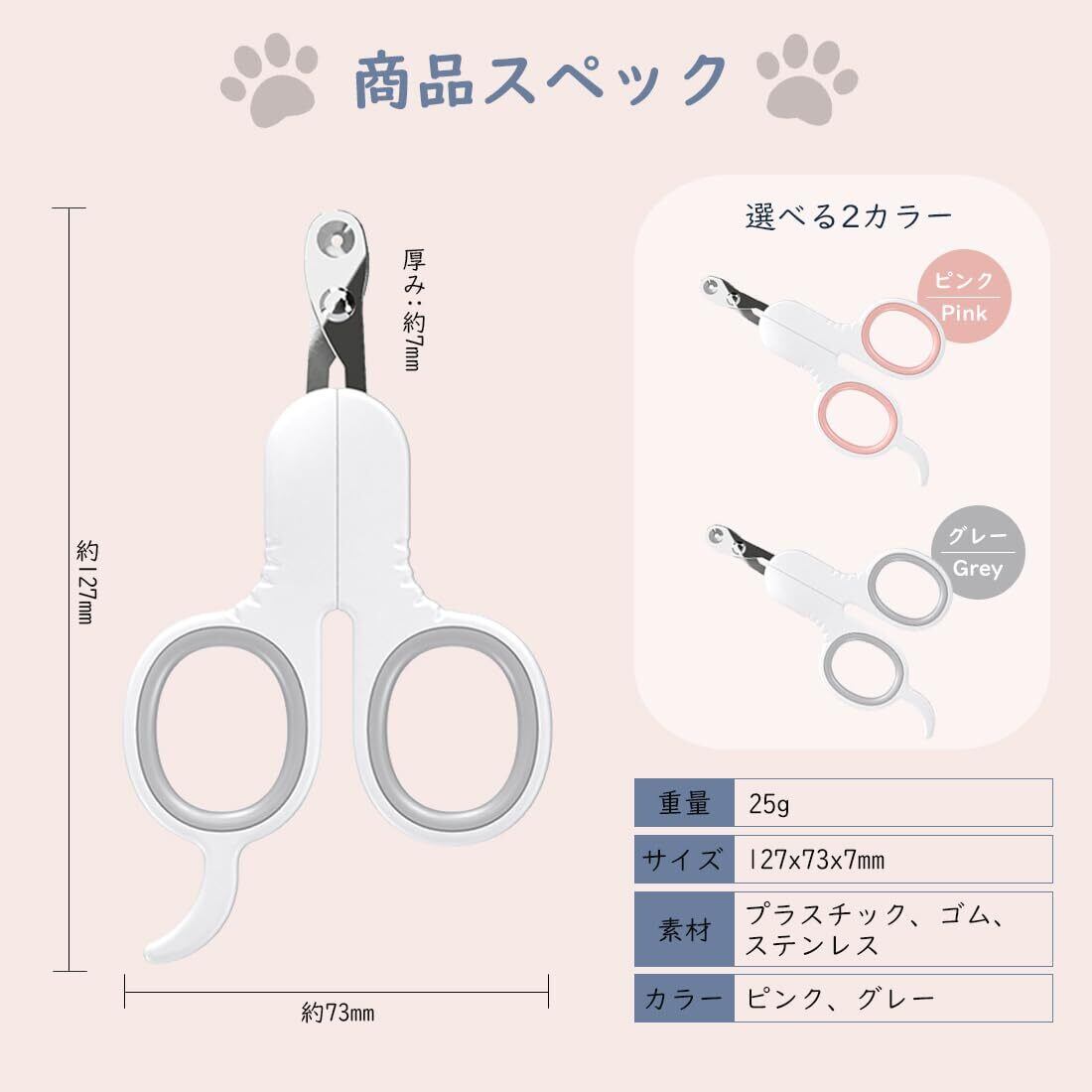 ペット用爪切り 猫用爪切り 丸穴 切り過ぎ防止 初心者用 ネコ 小型犬 うさぎ 丸型刃 Q型ハンドル 握りやすい 滑り止めゴム付き 軽量 簡単 (ピンク)