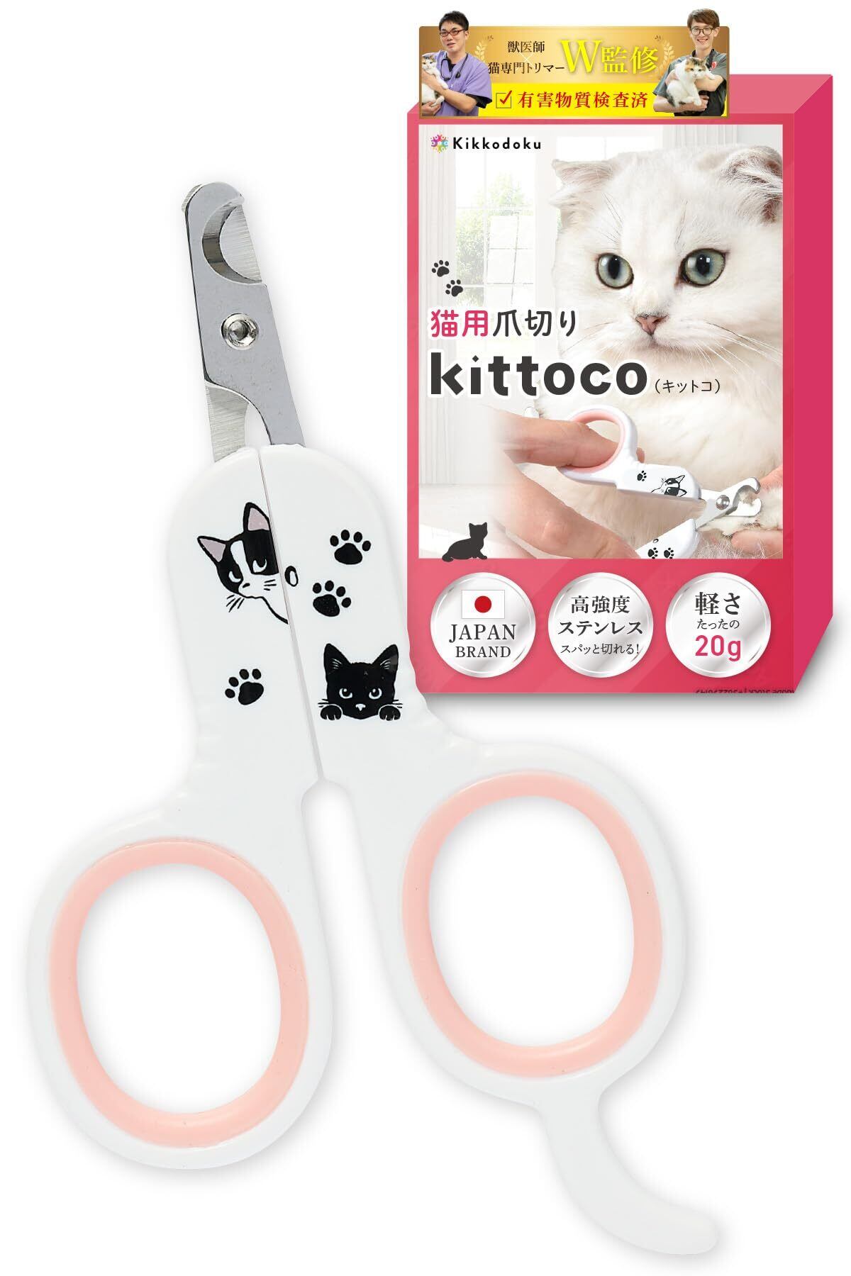 【獣医師&トリマー監修】猫 爪切り 【ホルムアルデヒド検査済】 軽いのにスパッと切れる 高強度ステンレス kikkodoku (ピンク)