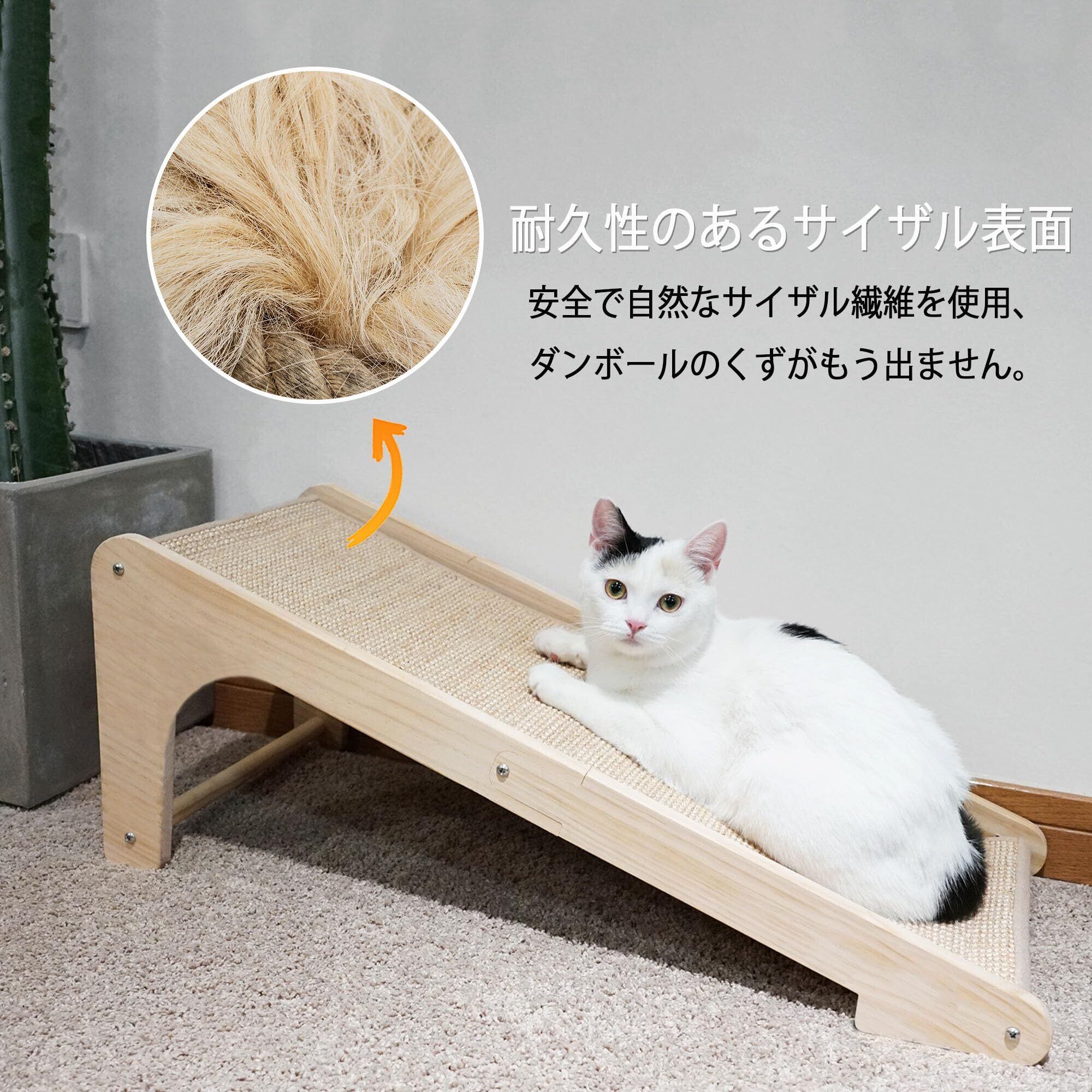 天然サイザル: 安全で天然のサイザル麻マットを使用し、爪とぎが大好きな猫に最適です。猫の爪を健康に保ちながら、楽しく遊べるように設計されています。