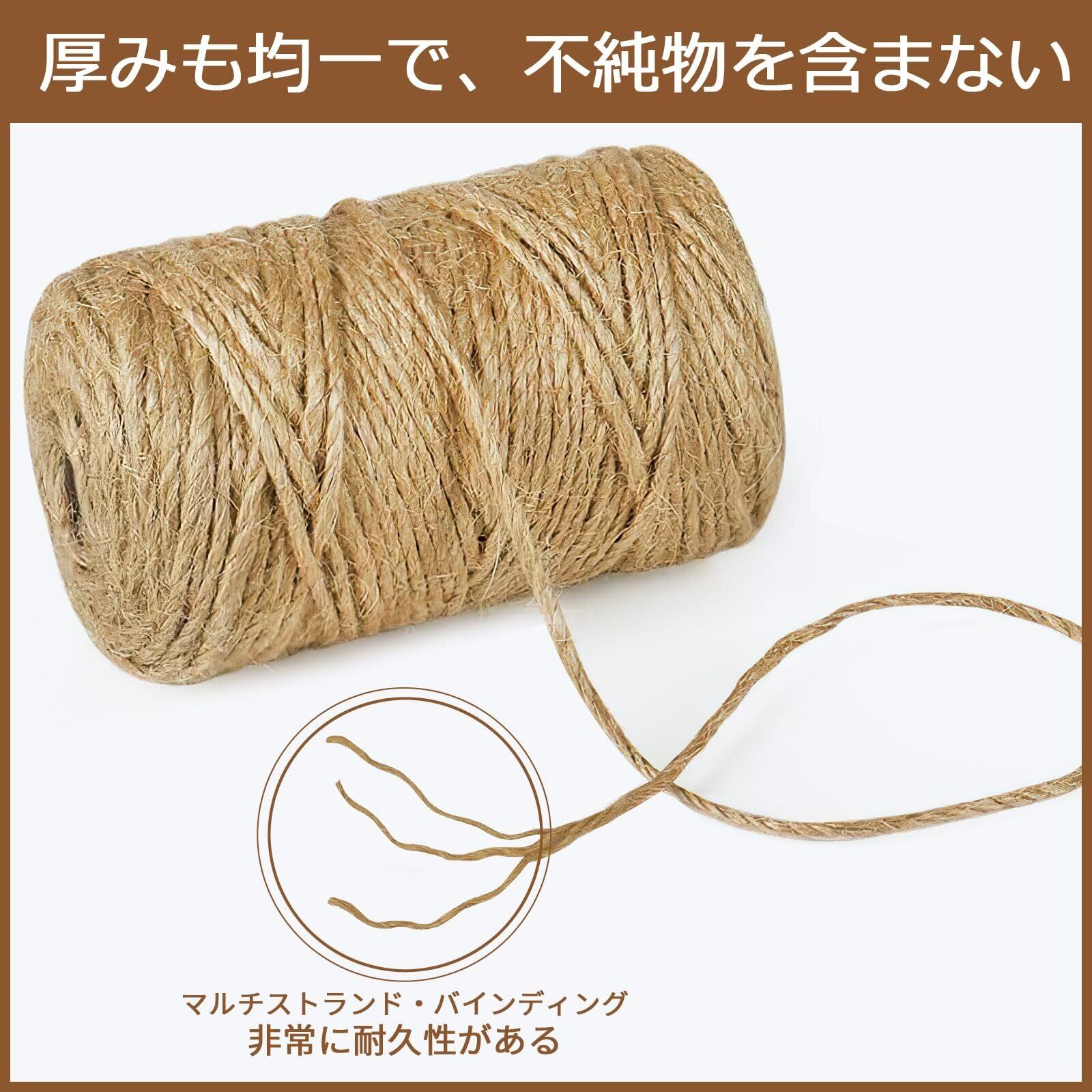 【天然素材】天然麻を採用して作られた麻ひもは環境に優しくて非毒性で分解できて、摩耗性が優れます、ペットと子供がいる家庭も安心にお使えます。天然麻素材は丈夫、100%品質合格で再利用も可能です。