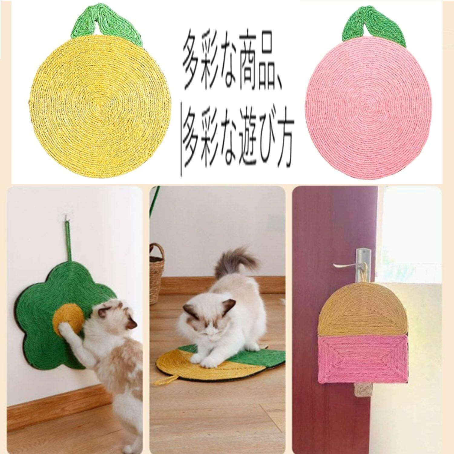 猫 爪研ぎ つめとぎ 爪とぎ 麻縄 花 みかん 壁 貼る 動物 可愛い 丈夫 耐久性 高密度 運動不足改善 猫おもちゃ ストレス解消 ペット用 家具破壊防止 猫用 オールシーズン(ピンクオレンジ)