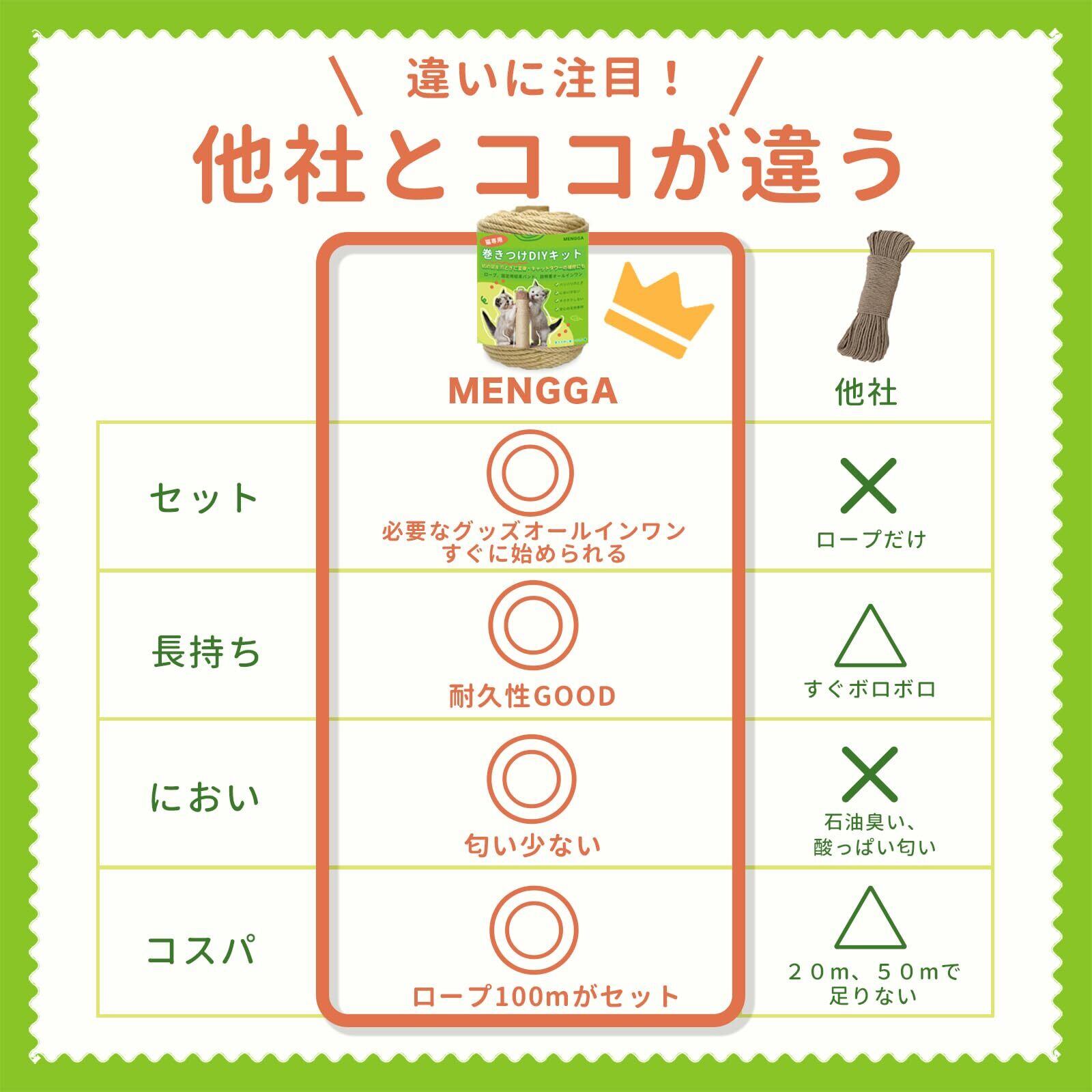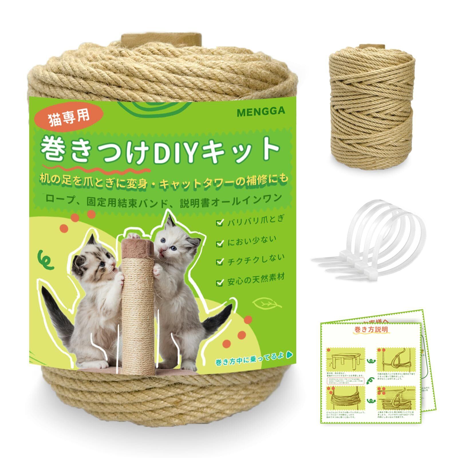 【猫専用DIYロープセット】猫 爪研ぎ 麻 バリバリ ジュートロープ キャットタワー 補修にも(MENGGA/キャットタワー ミニ/つめとぎ 猫タワー/猫爪研ぎポール/猫 爪とぎ/猫用品/ネコ/ねこ/麻縄/麻ひも/麻紐/麻ロープ 6mm 100m 入り)