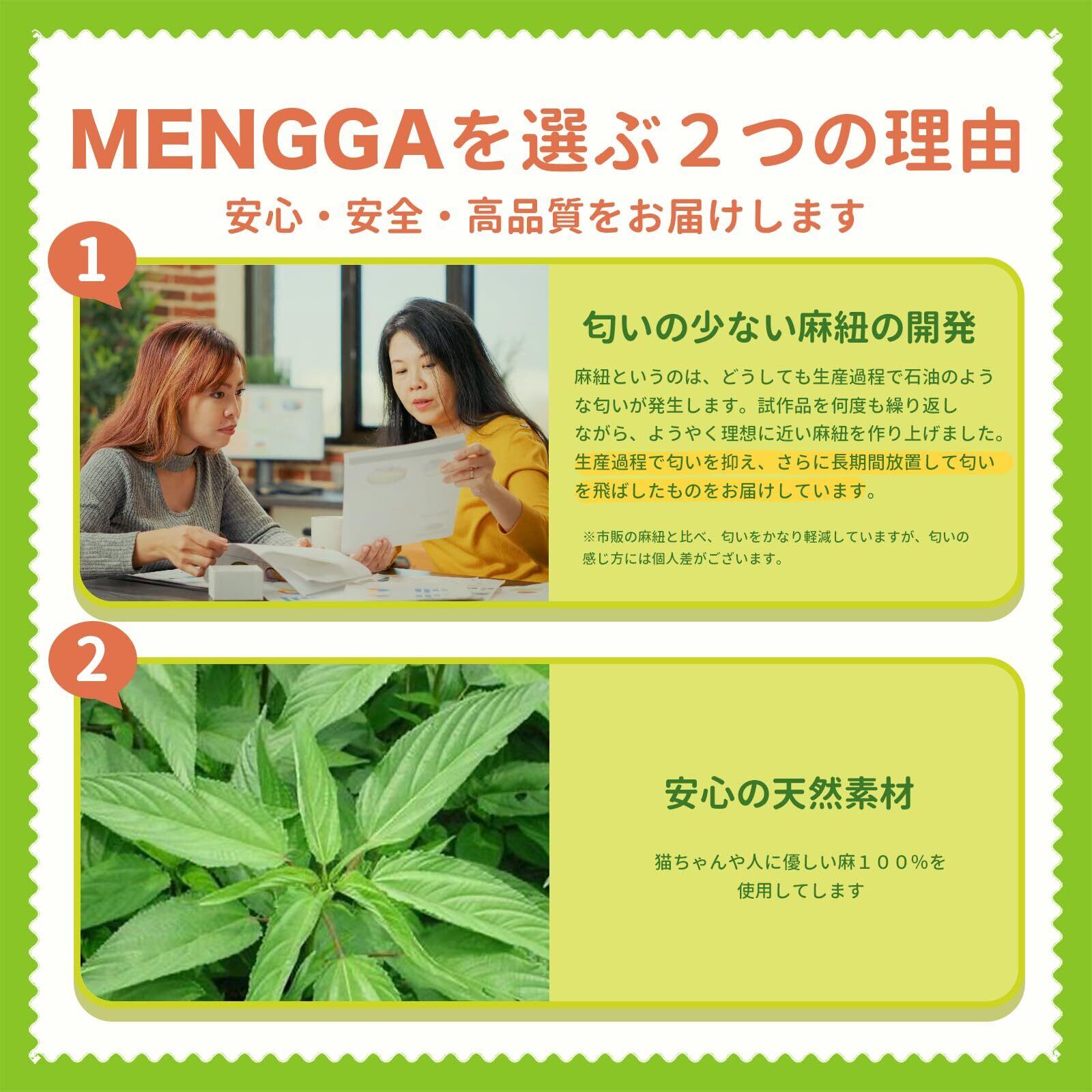 【選べる2タイプ】 用途や猫ちゃんの好みに合わせて選べます。麻タイプ:定番のバリバリ感で耐久性抜群。綿タイプ:柔らかめで猫爪とぎカスでないから掃除もラク。子猫や高齢猫にもおすすめ。