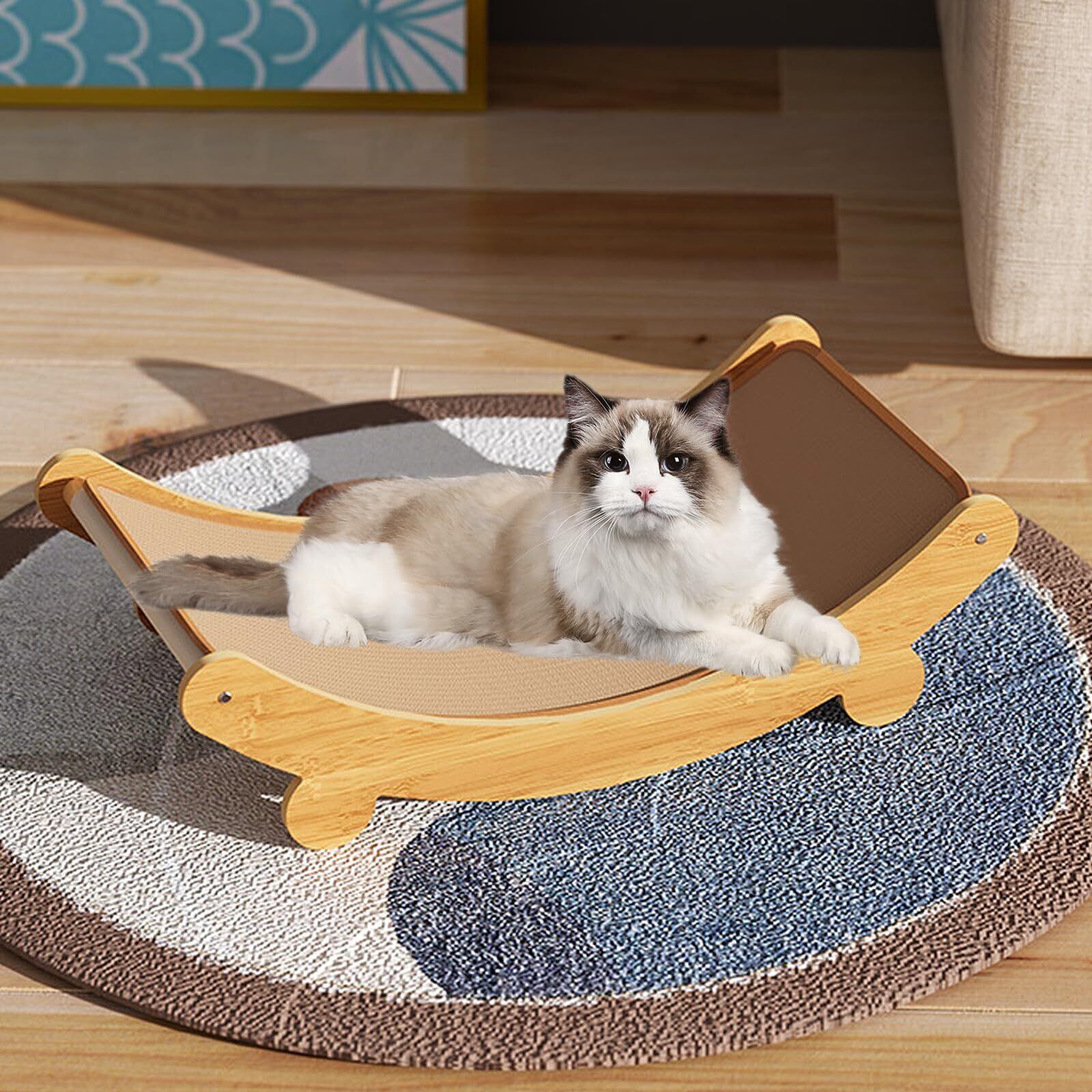 リクライニング椅子のようなU字型デザイン: U字型のデザインは、猫が爪を研ぐ、丸まって寝る、または横たわるのに最適で、猫に安心感とリラックスを提供。