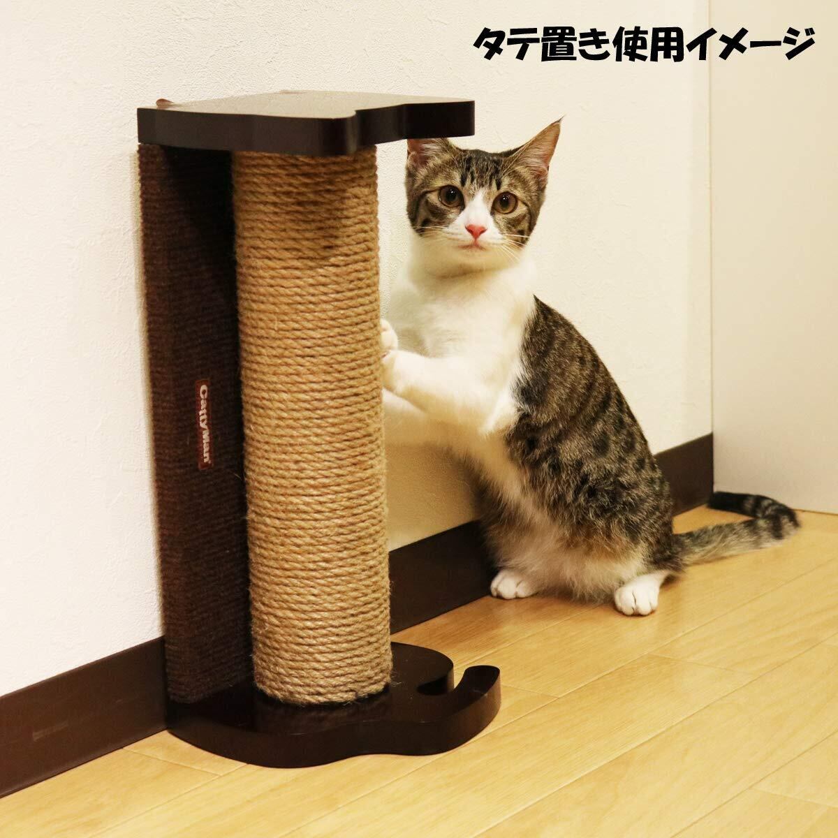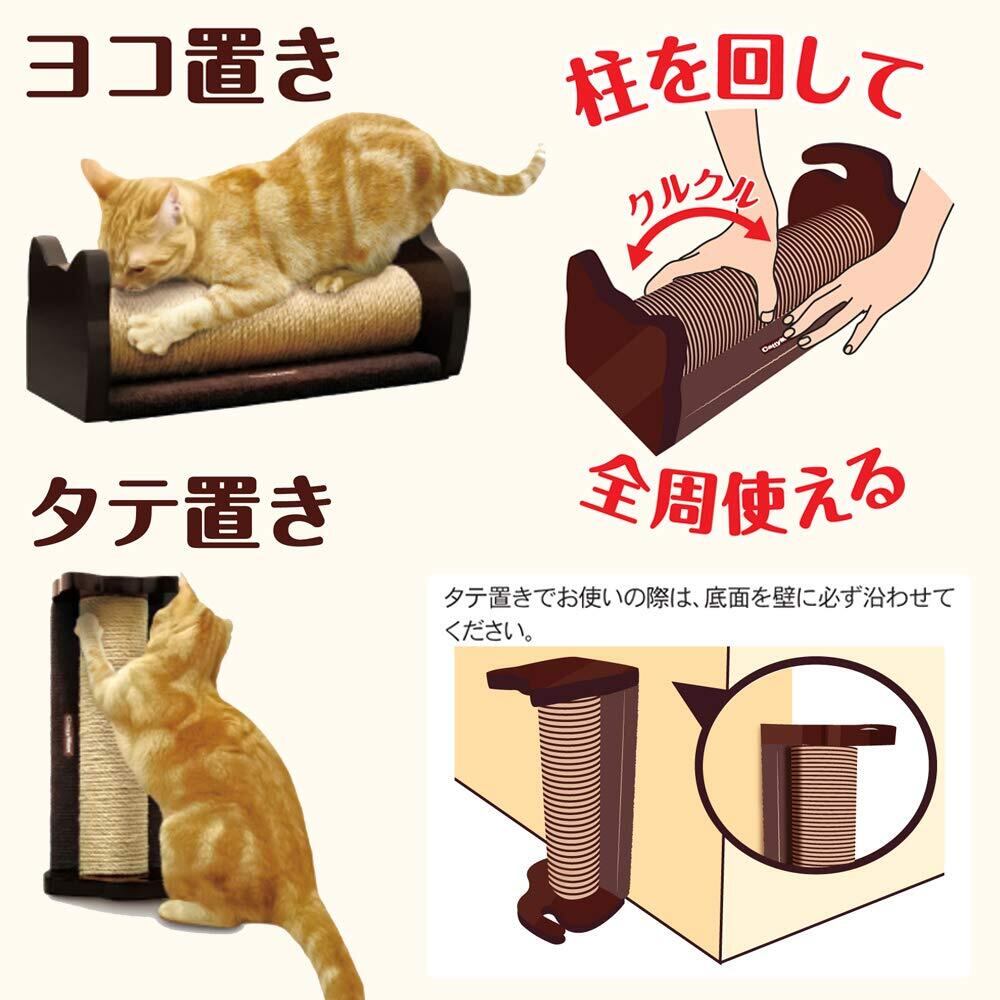 ・猫の顔とお尻の爪みがき。・ほつれにくくゴミが少ない。・ヨコ置き、タテ置きどちらも使え場所を選びません。・消耗した柱の縄は回転させて傷んでいない所が使える。