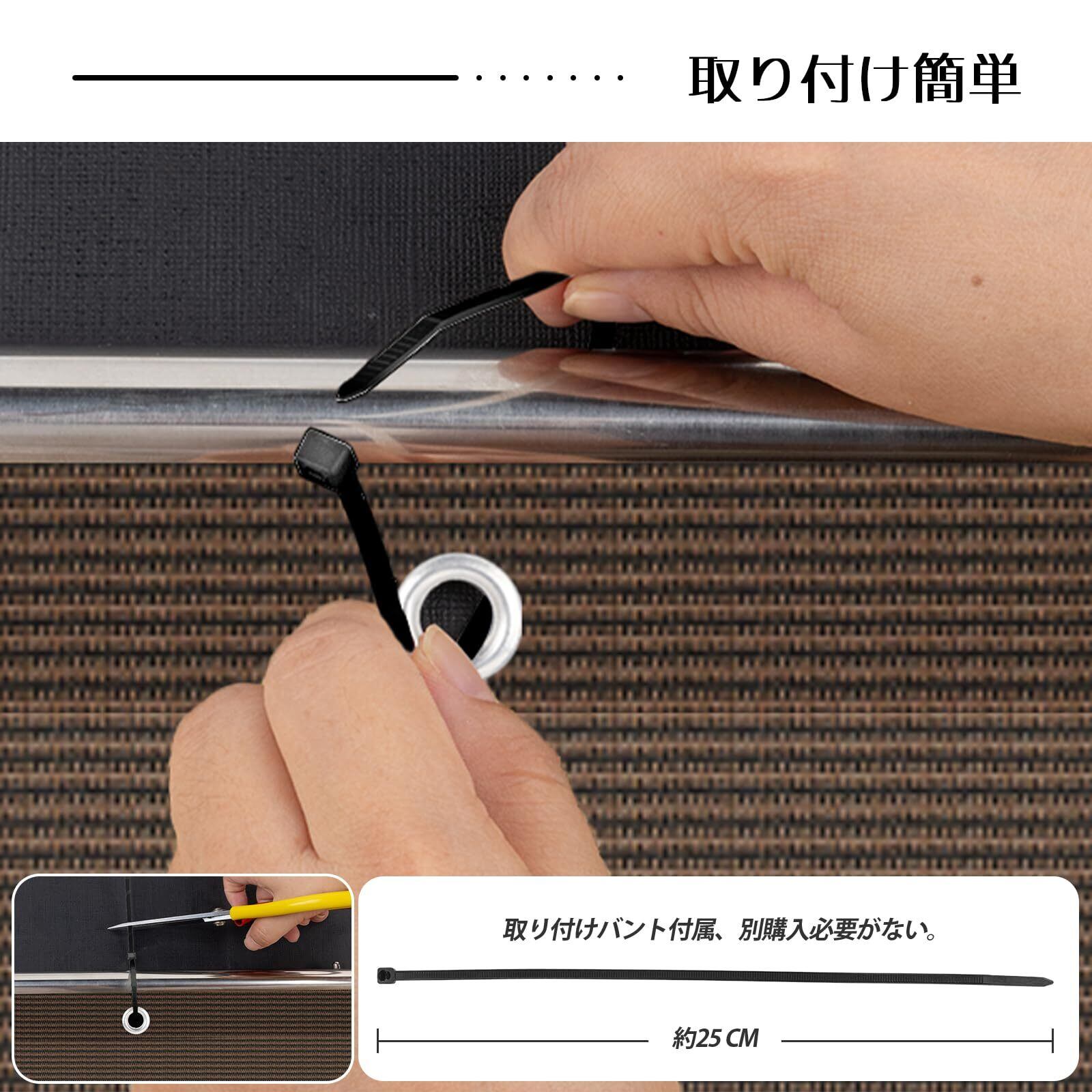 【高い利便性】紫外線に強い、色褪せや紫外線劣化に強い糸で織られた生地を使用、 重さは185gの生地で、目隠し効果と遮光率ももっと高くなります。また、取付用のバンドを付属しており、1人でも手軽に設置できます。