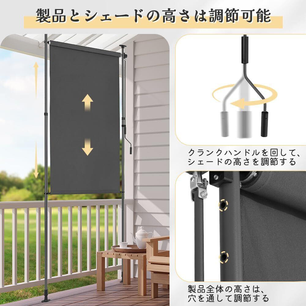 KELIXU 突っ張り式サンシェード 縦型 オーニングシェード 日除け 屋外 幅120cm ひよけ 目隠し 巻き取り式 高さ調節可能 断熱 遮光 防水シート 取り付け簡単 穴あけ不要 庭 ベランダ (グレー)