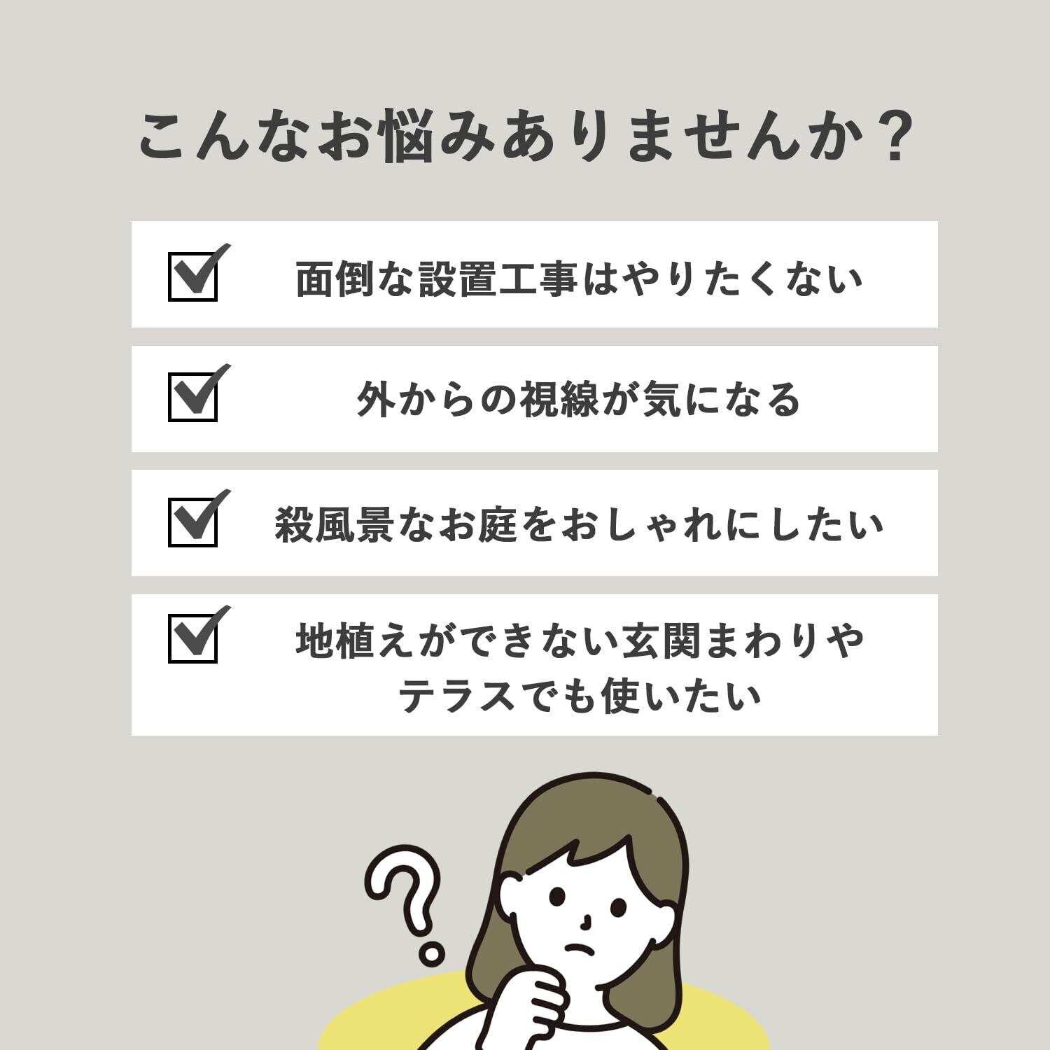 【目隠し効果】玄関前、バルコニー、お庭に置いた雑多なものをうまく隠して、プライベートを守る。