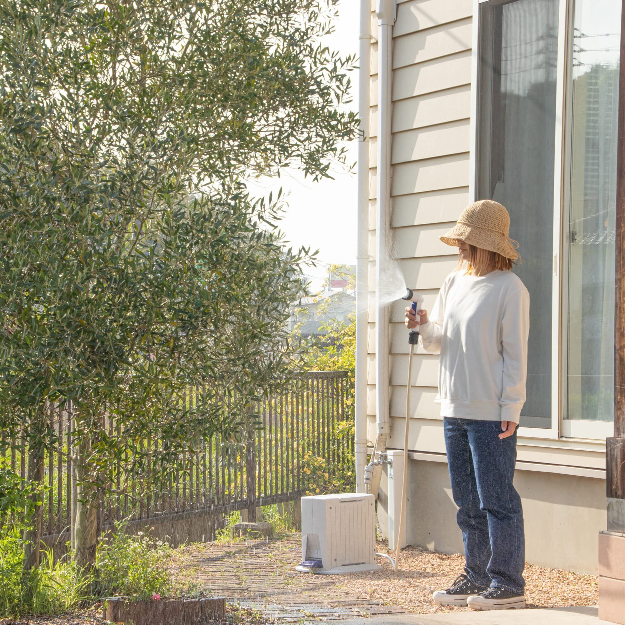 立ったままホースを巻き取れてます。