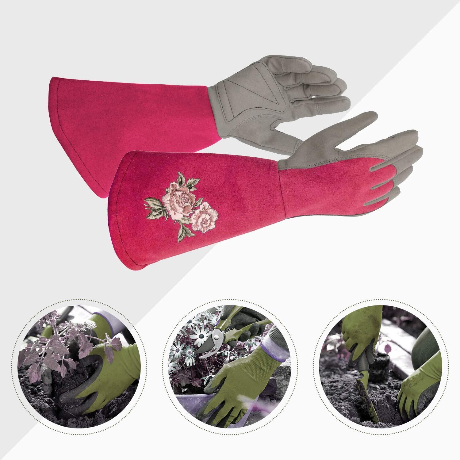 [Intra-FIT] CE認証済み 園芸用手袋 ガーデングローブ バラグローブ 長袖 バラ手袋 園芸手袋 薔薇用手袋 合成革 ガーデンニング 庭仕事 耐穿刺 フィット 通気 柔らかい 花柄デザイン