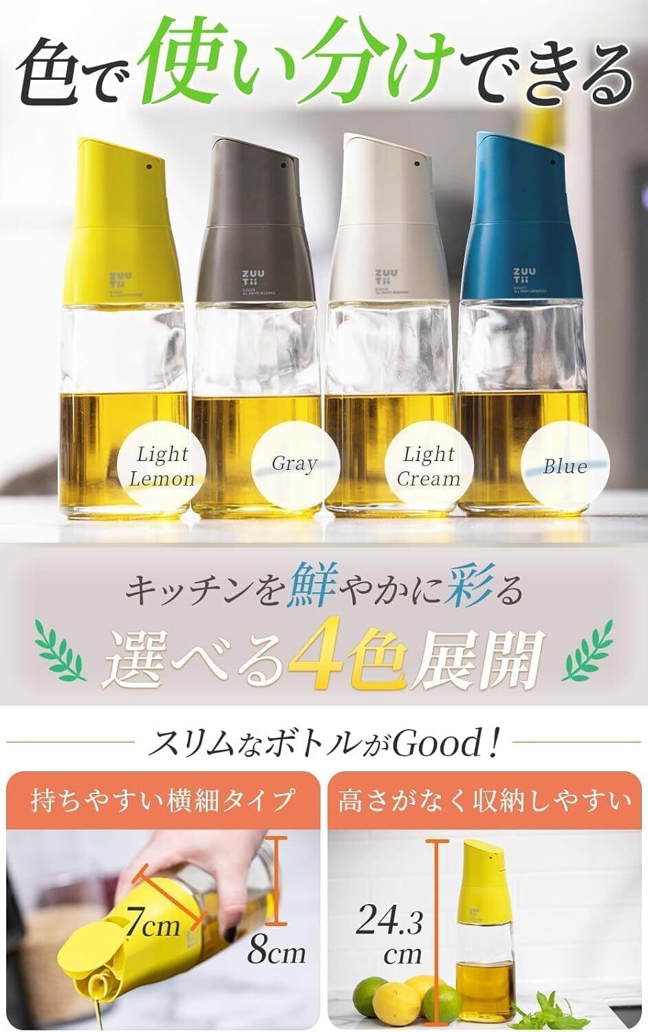 Zuutii 片手で使えるオイルボトル 液だれしない 醤油差し その他調味料に 食洗機対応 ギフトにも 500ml Light Lemon ZTOC5640
