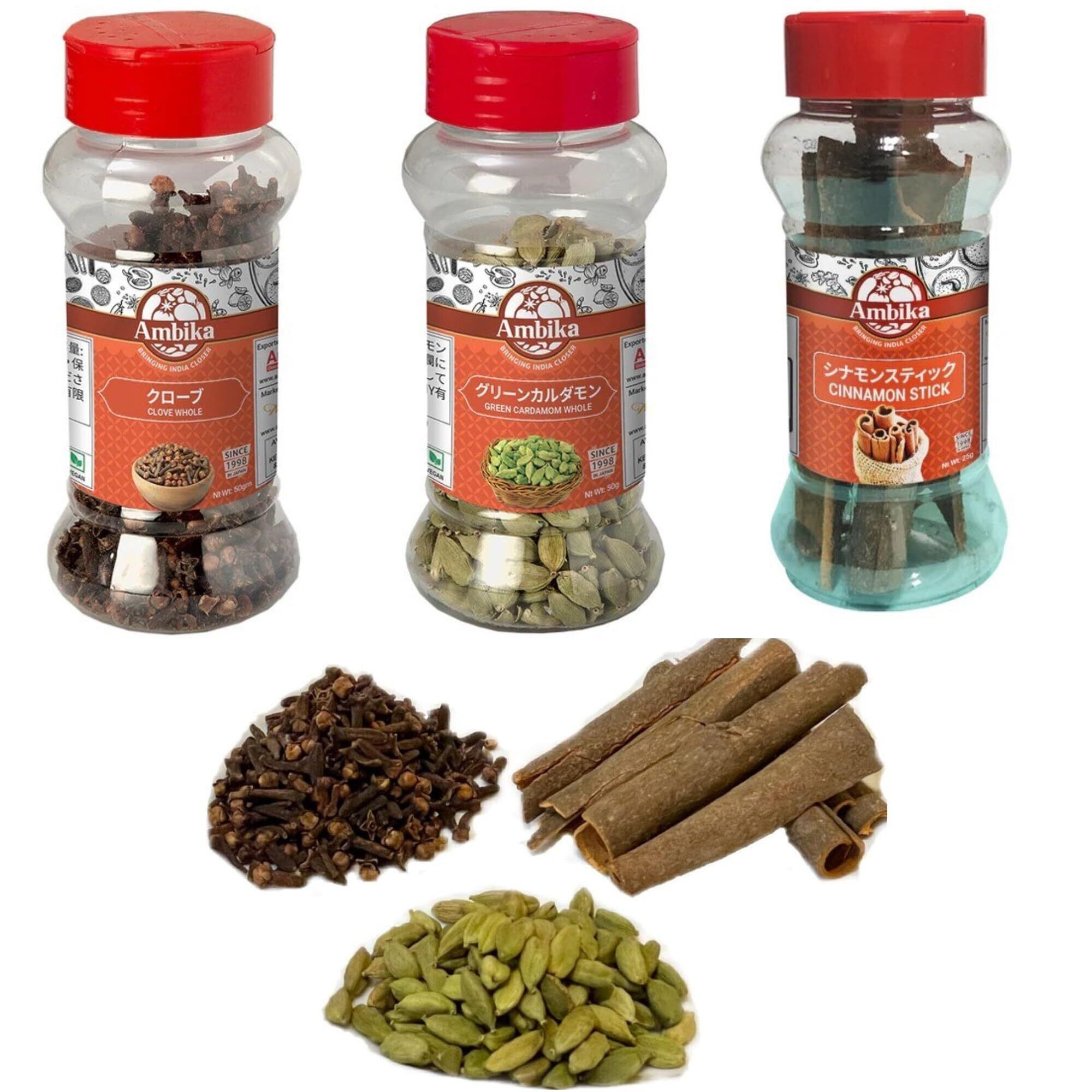 【Ambika】スパイス 3点セットクローブホール カルダモンホール 1ボトル50gシナモンスティック 1ボトル25g 基本のスパイスセット