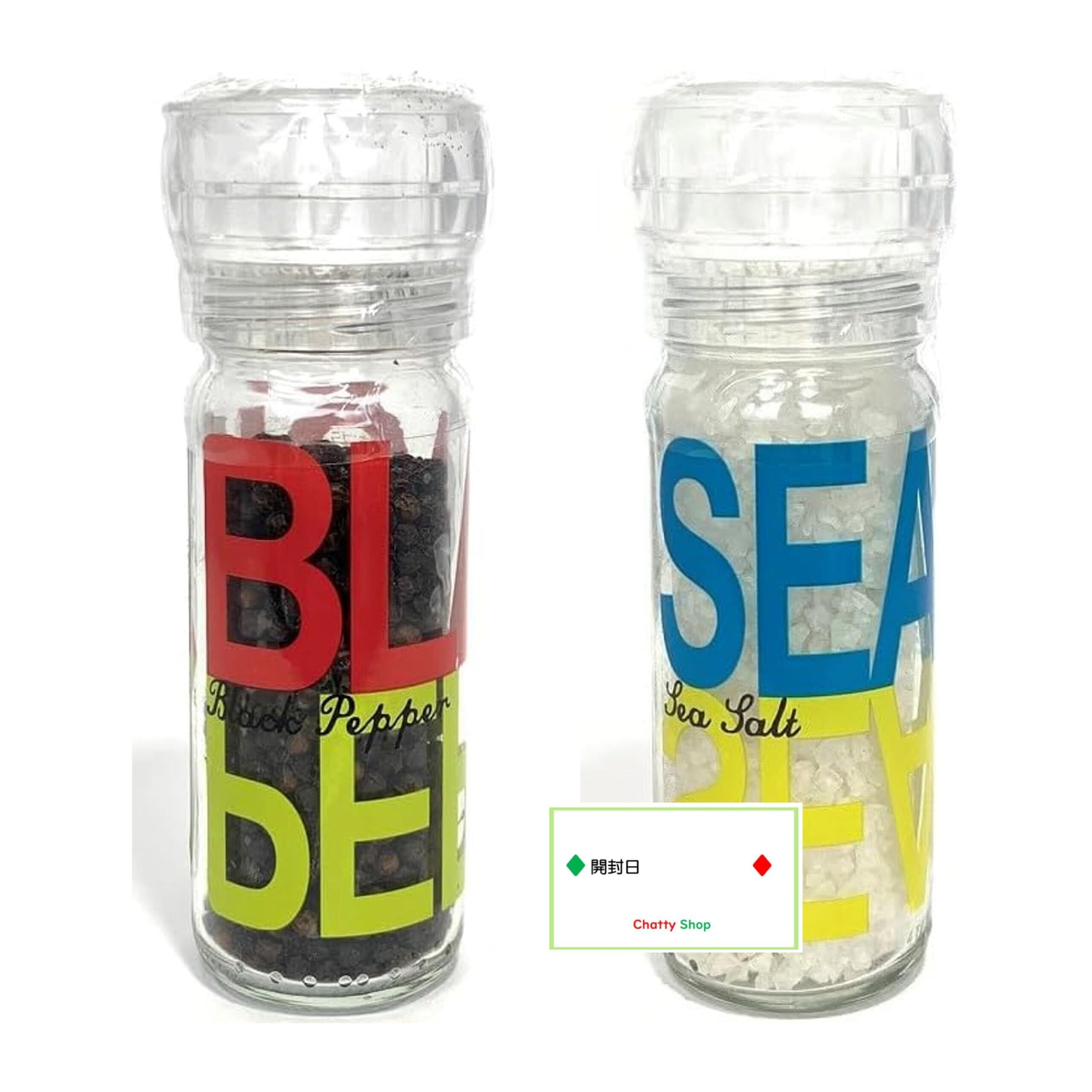 【2種セット】 スパイスアップ ミル付 (ブラックペッパー + シーソルト) オリジナル開封日シール付き 海塩 胡椒