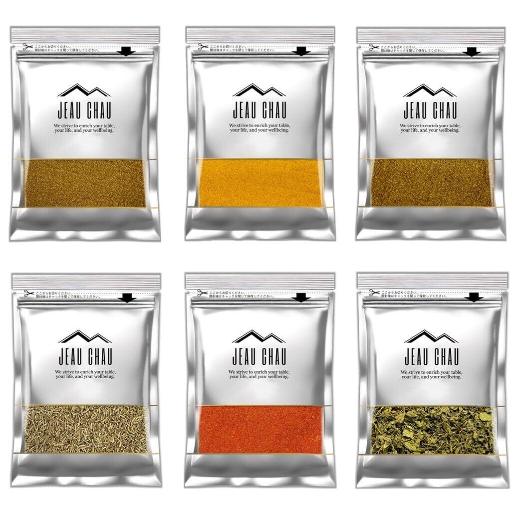 JEAU CHAU カレー スパイス セット 6種類 (クミンパウダー ターメリックパウダー コリアンダーパウダー クミンシード チリパウダー カスリメティ) 基本のスパイスセット 選別品 香辛料/無添加