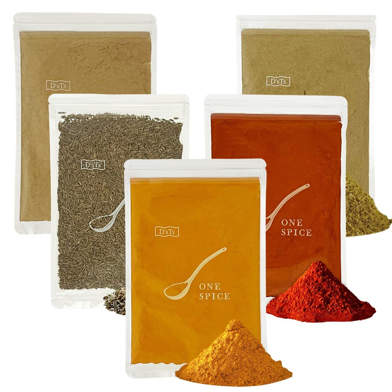 D'sTs スパイス カレー クミンシード ターメリック クミンパウダー チリパウダーコリアンダーパウダー カレー粉 無添加 100g 5種セット