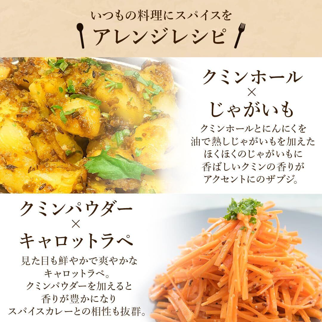 【クミンパウダー& クミンシード】ほろ苦い香りと辛みのある芳醇な風味が料理全体に行き届き、カレーの香り、味をより一層引き立てます。また様々な料理の香り付けとして使用できます。