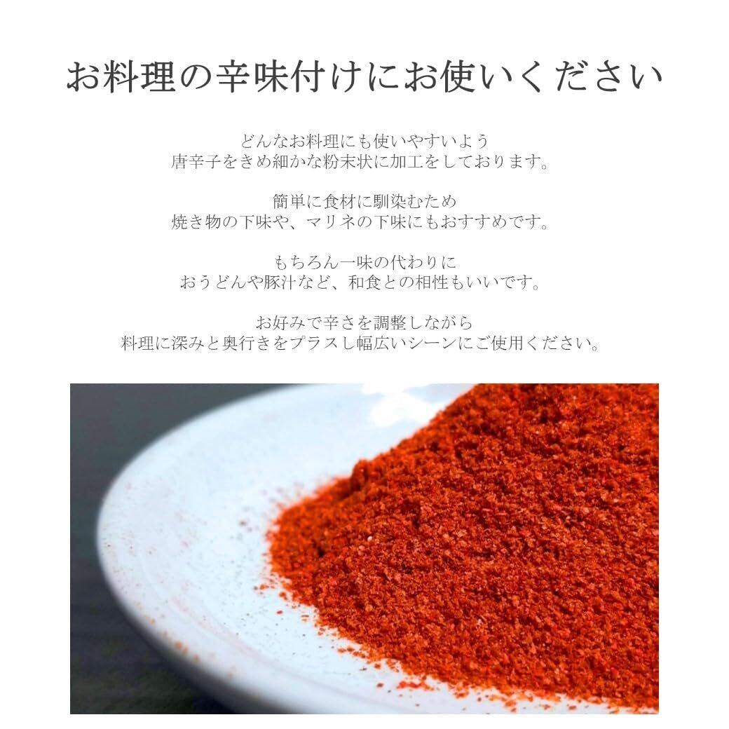 【ご使用方法】《主な料理》カレーの辛味付け、タコス、チリコンカン、麻婆豆腐、キムチ鍋、マリネ、和食の隠し味その他様々なシーンでお楽しみください。